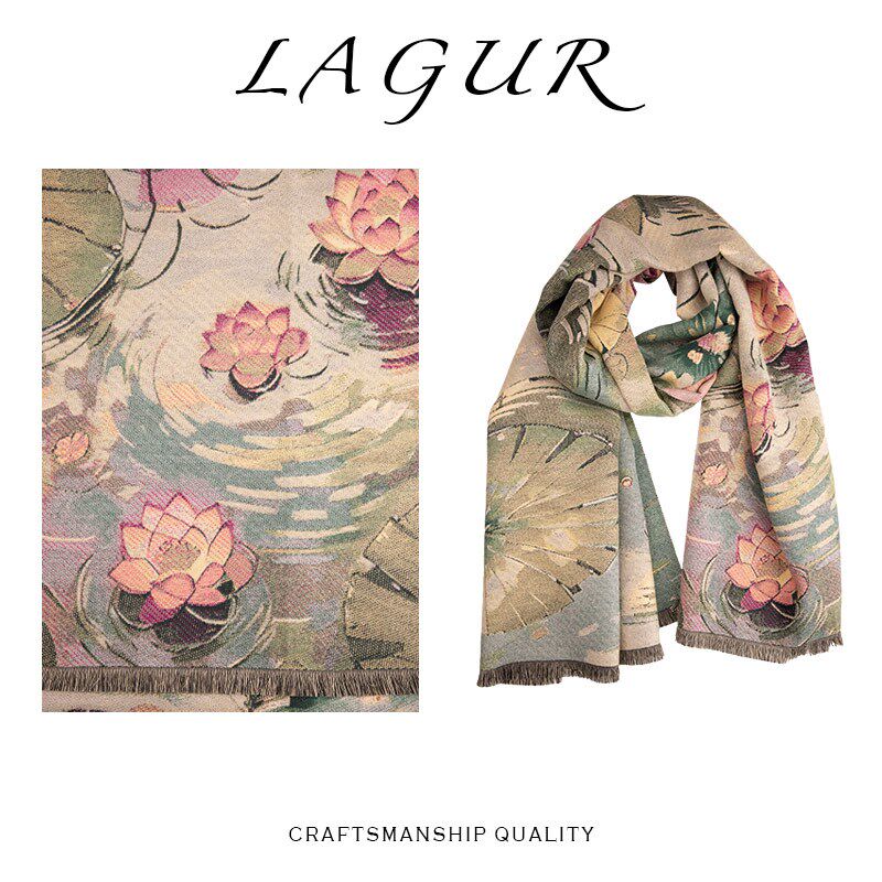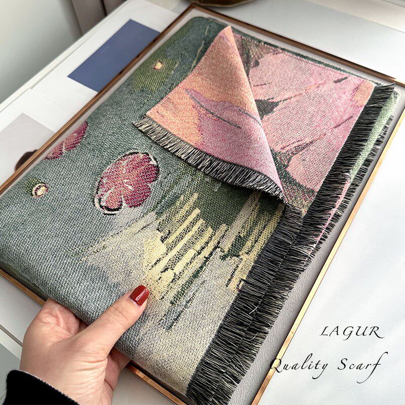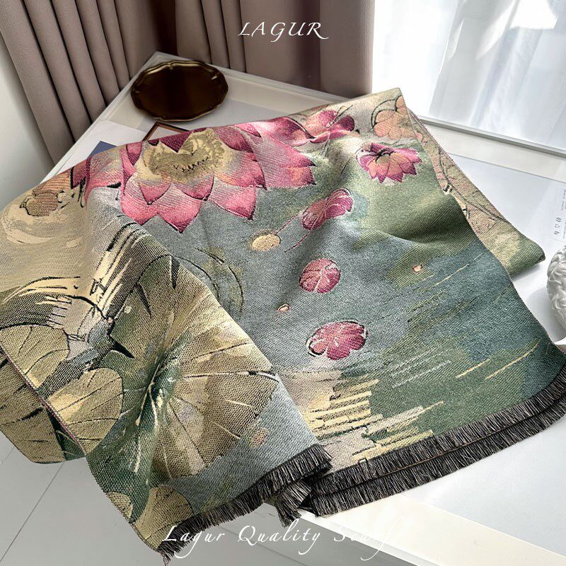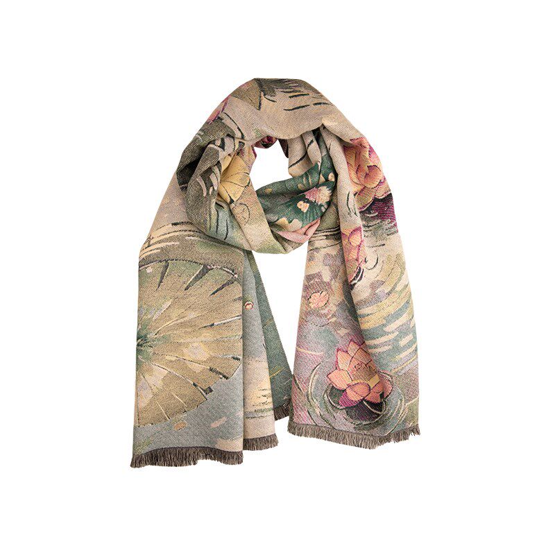 📚 江南盛莲!主题款双面艺术围巾女冬季2024新款中式百X搭气质妈妈款