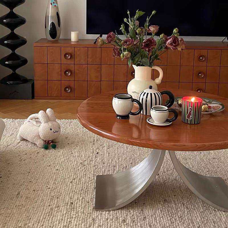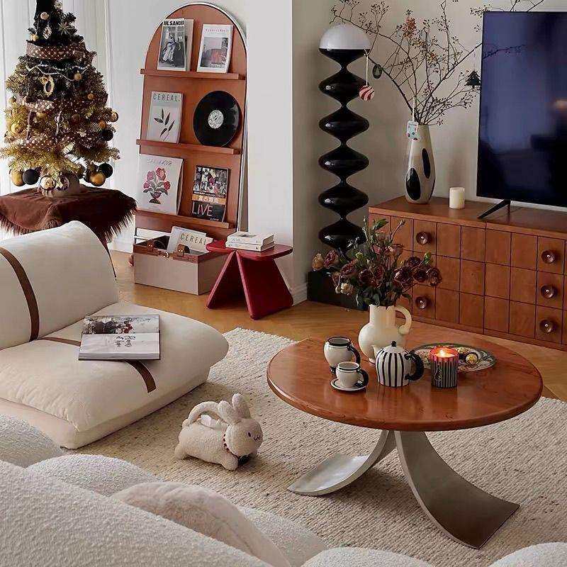 📚 中古风实木圆形茶户几客厅约家用圆形餐IET桌简现代设计师小款型