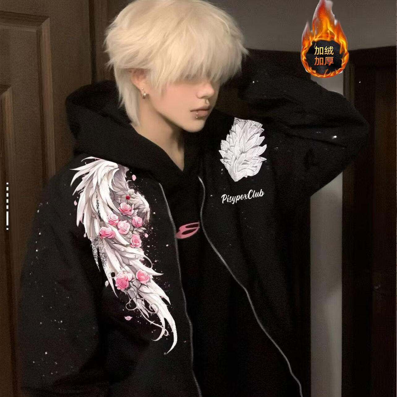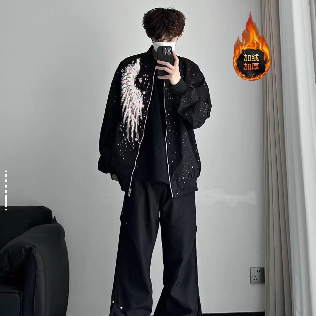 📚 满天星双层复古翅膀黑色飞行员夹克男秋冬季新款宽松百搭情侣外套