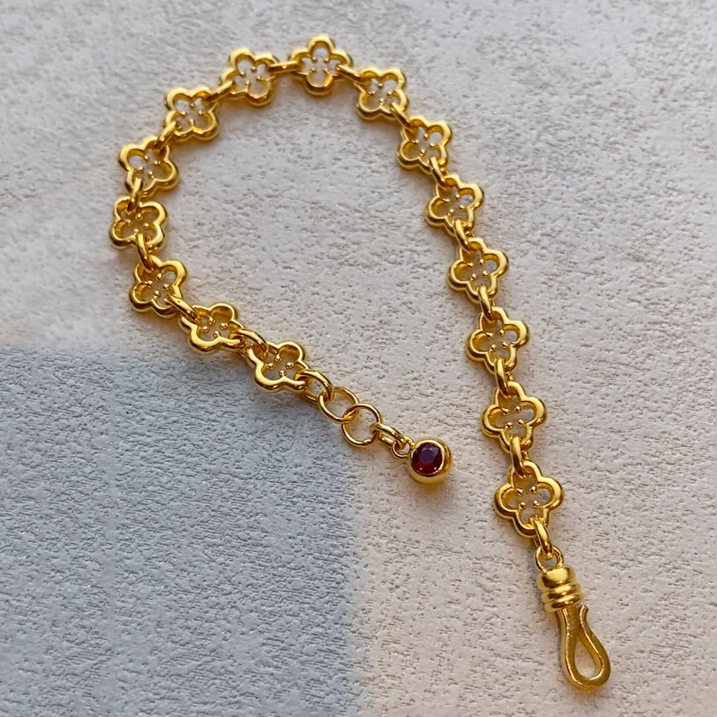 📚 现货vintage【四叶花】金环扣红宝石尾链仿黄金手链女新款高级感