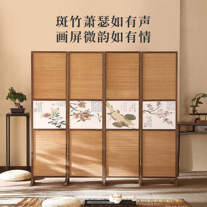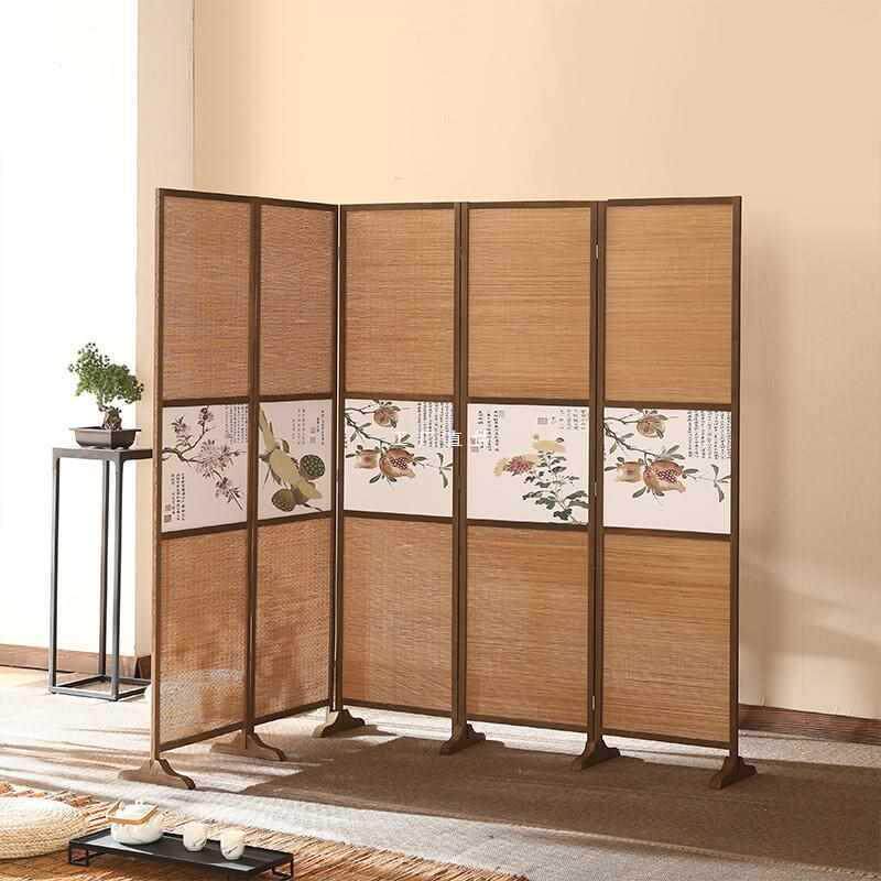 📚 MF-060新中式竹编屏风隔公断复古做旧屏叠移动客厅办室摆件折折入