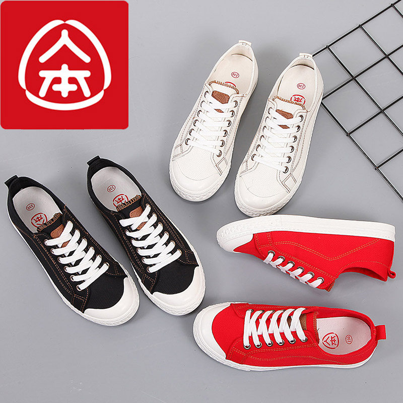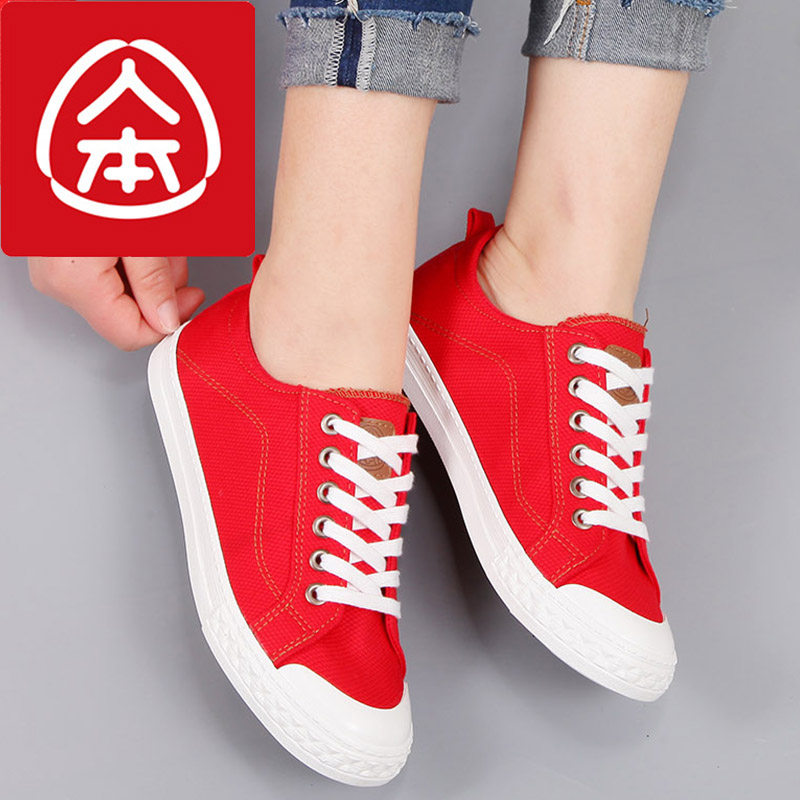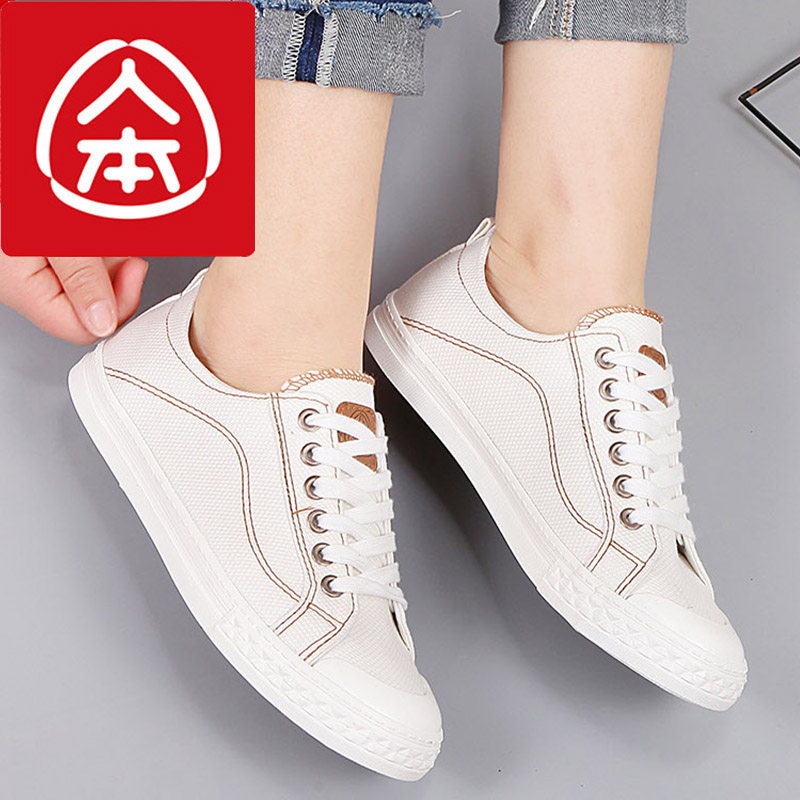 📚 人本大码女鞋41-43一脚蹬帆布鞋透气小白鞋百搭学生松紧带42板鞋