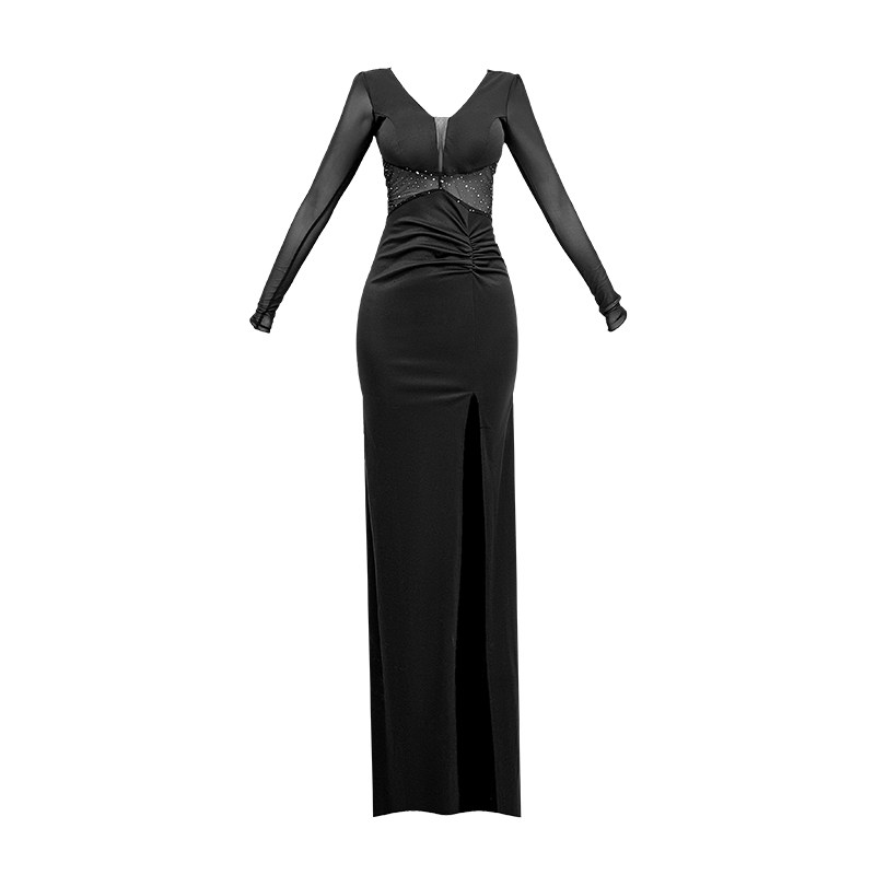 📚 小众高端长袖鱼尾长裙名媛气质高腰连衣裙桑拿技师主持人晚礼服女