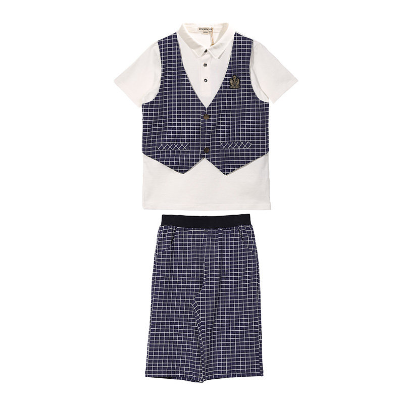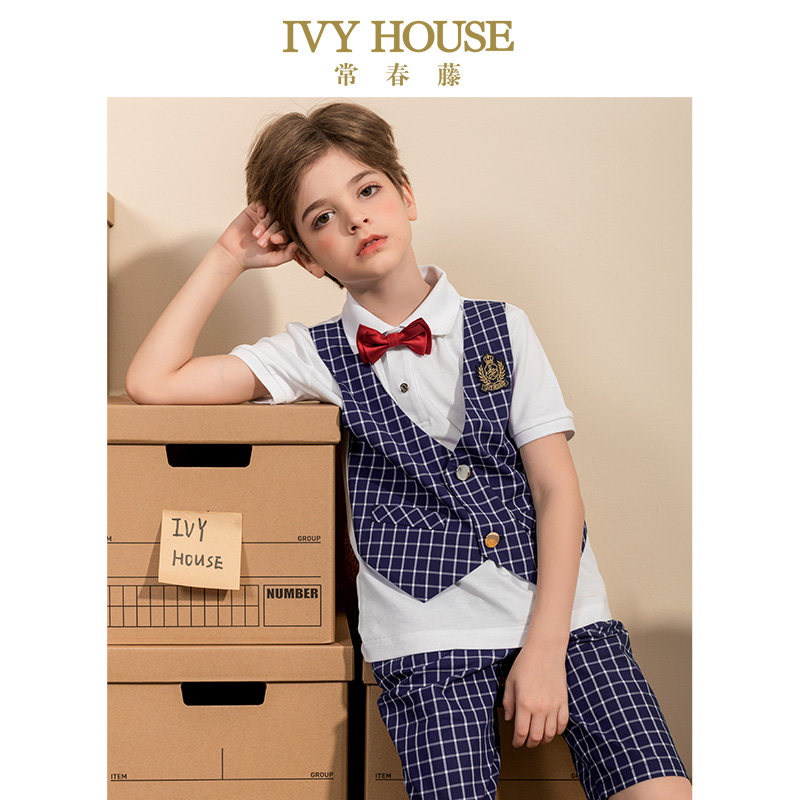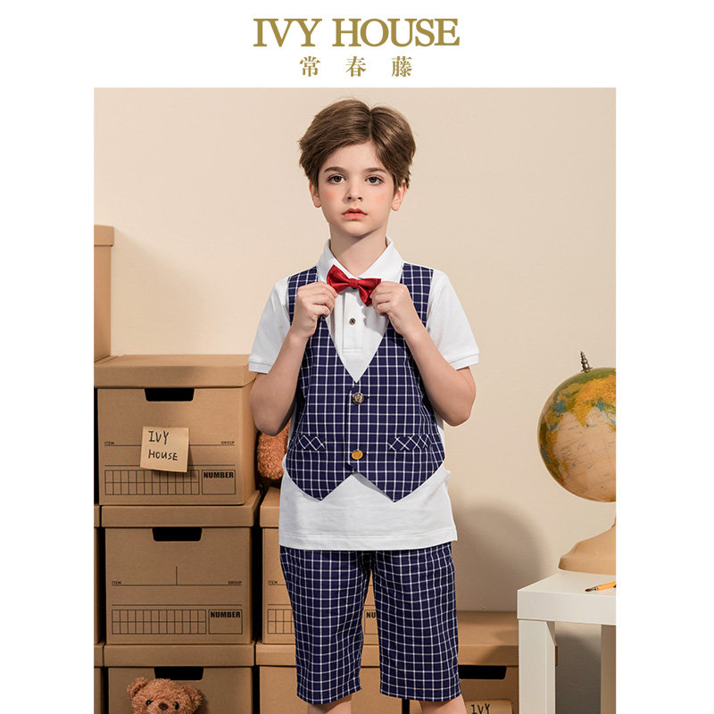 📚 IVY HOUSE常春藤童装男童夏季新款 学院风时尚校园马甲假两件套装