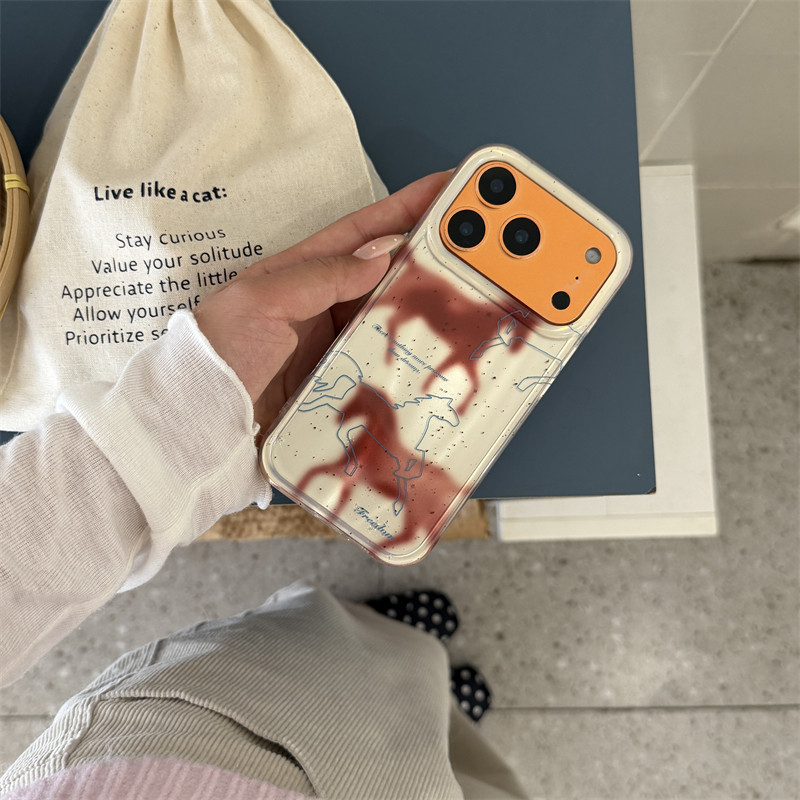 📚 韩系ins泼墨复古棕色小马苹果13镭射双层手机壳16pro新款iphone17promax女款15创意全包双层14p保护套适用潮