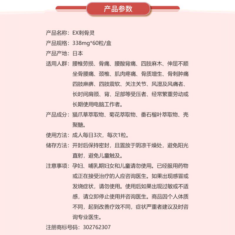 📚 日本进口EX刺骨灵60粒风湿关节疼痛骨质增生坐骨神经腰椎疼痛骨刺