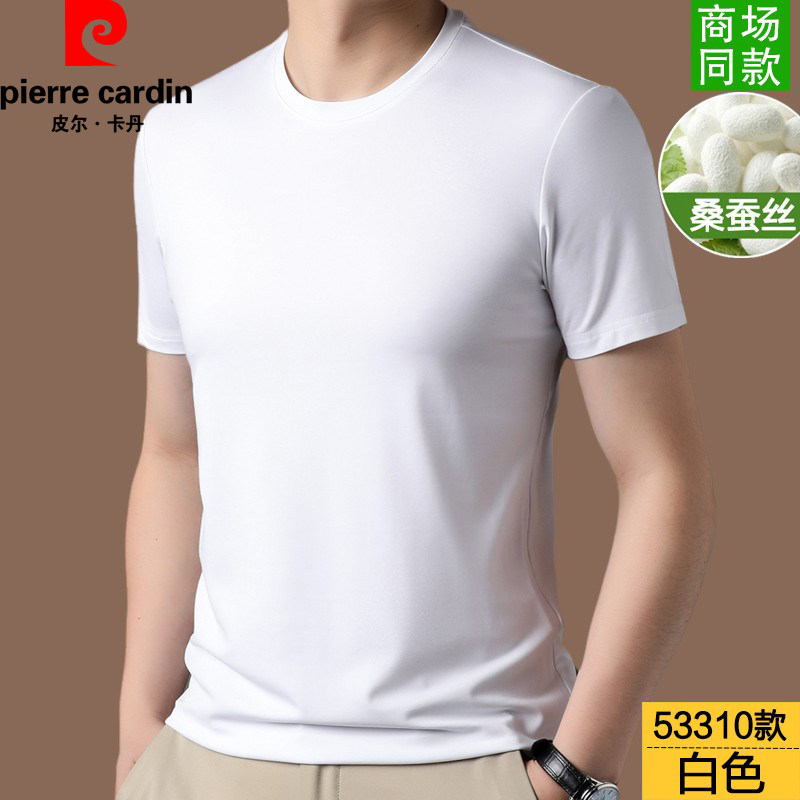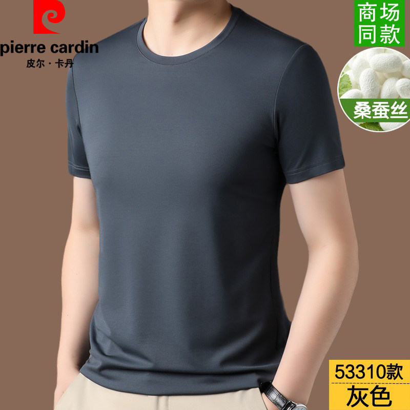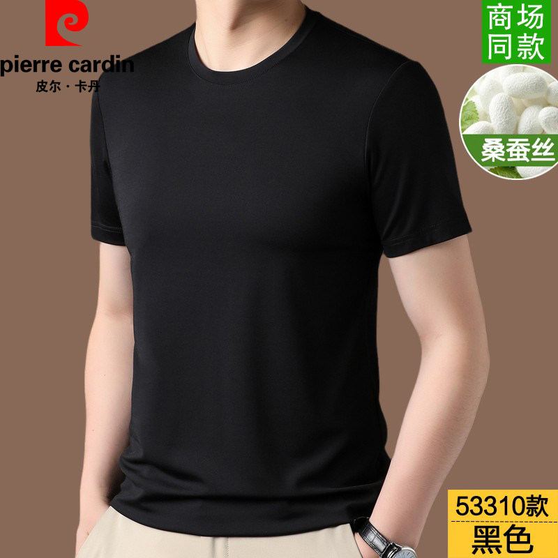 📚 皮尔卡丹高端中年桑蚕丝短袖T恤男夏季薄款高端纯色上衣爸爸V圆领