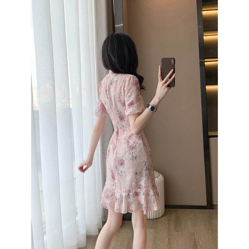 📚 改良女夏季2024新款高级感盘扣雪纺碎花鱼尾裙