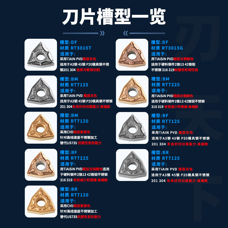 📚 刃天下 桃型外圆数控刀片WNMG080404/08/12-BF BM DF合金车刀