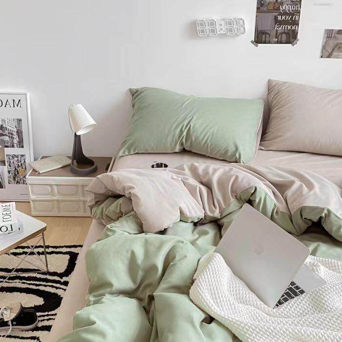 📚 ins水洗棉床上用品四件套床单被套被罩批发款学生宿舍三件套床笠