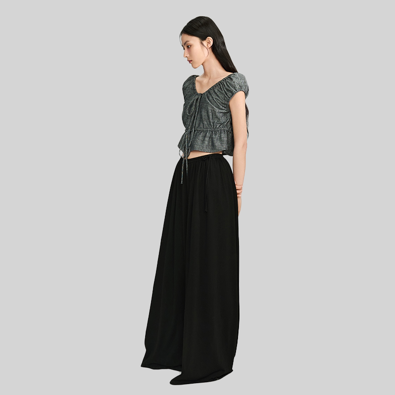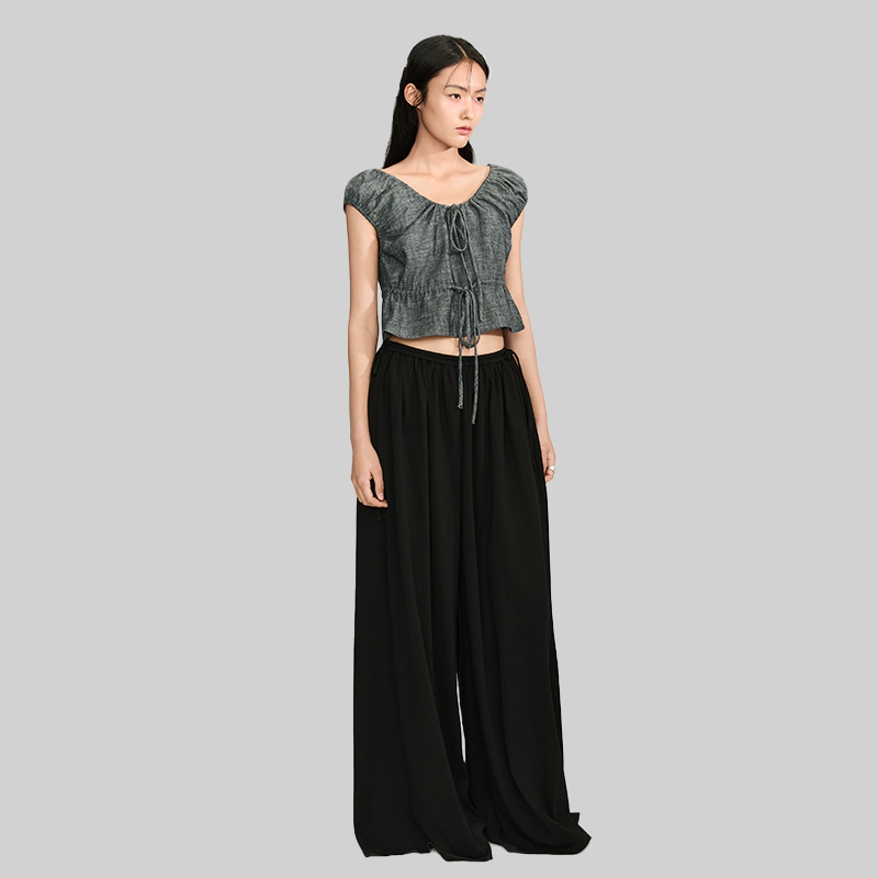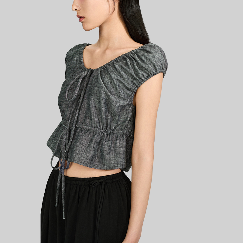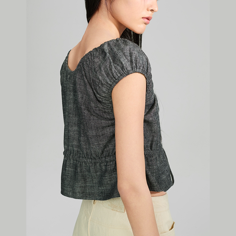 📚 NOD NOT NO亚麻混纺抽绳褶皱短上衣花苞收腰设计感短款TOP