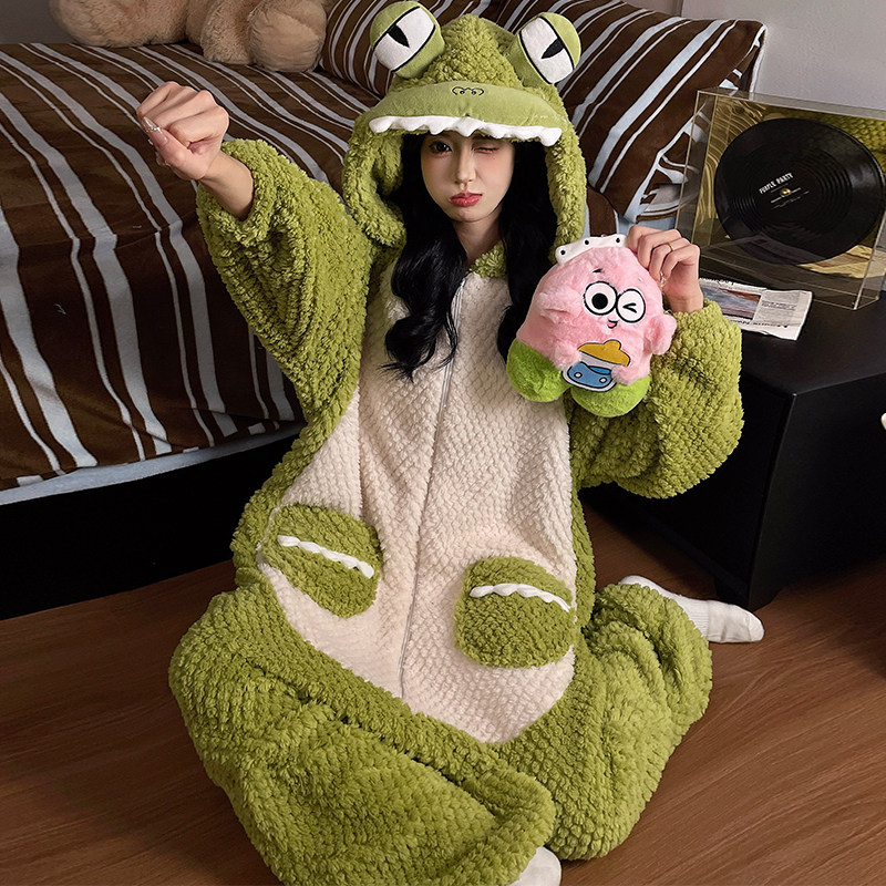📚 珊瑚绒睡衣女连体恐龙衣服2025超火冬季一整套女士加厚冬睡袋成人