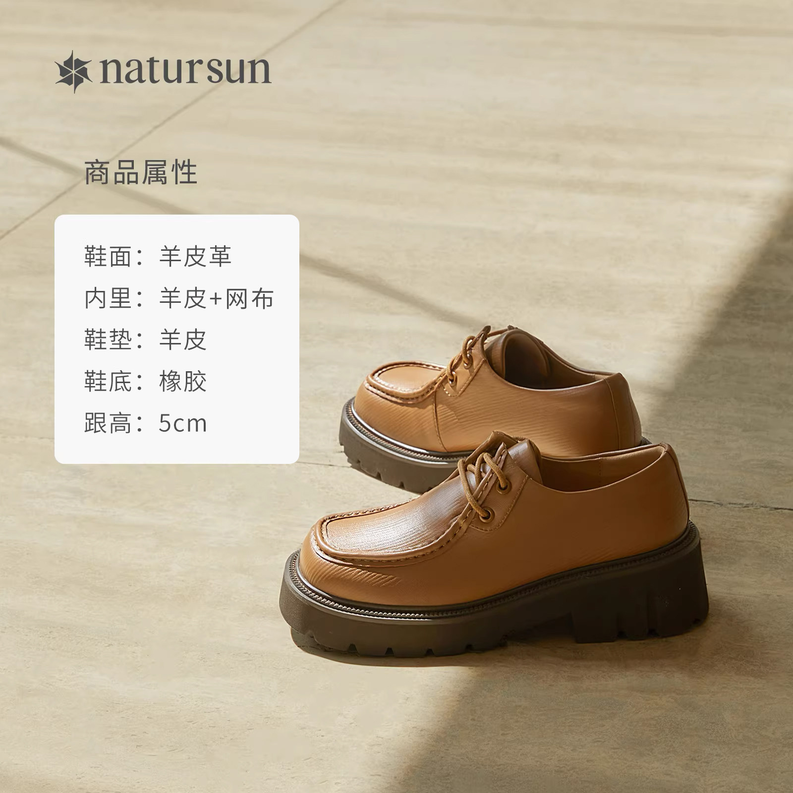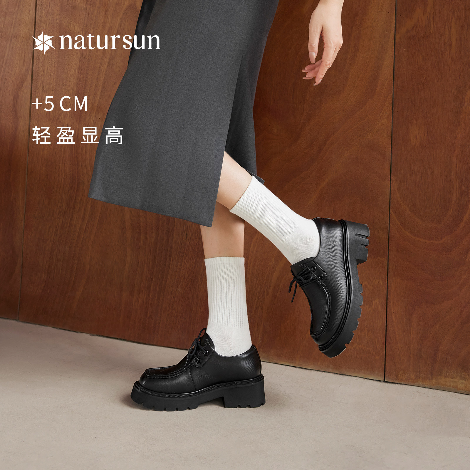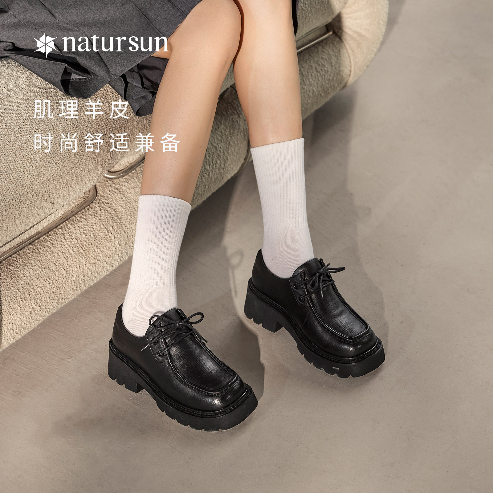 📚 natursun英伦风小皮鞋女冬季圆头系带厚底黑色单鞋舒适通勤春季