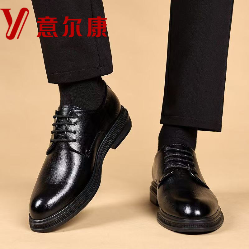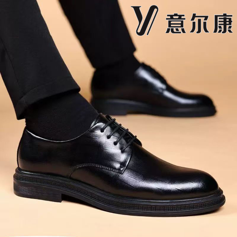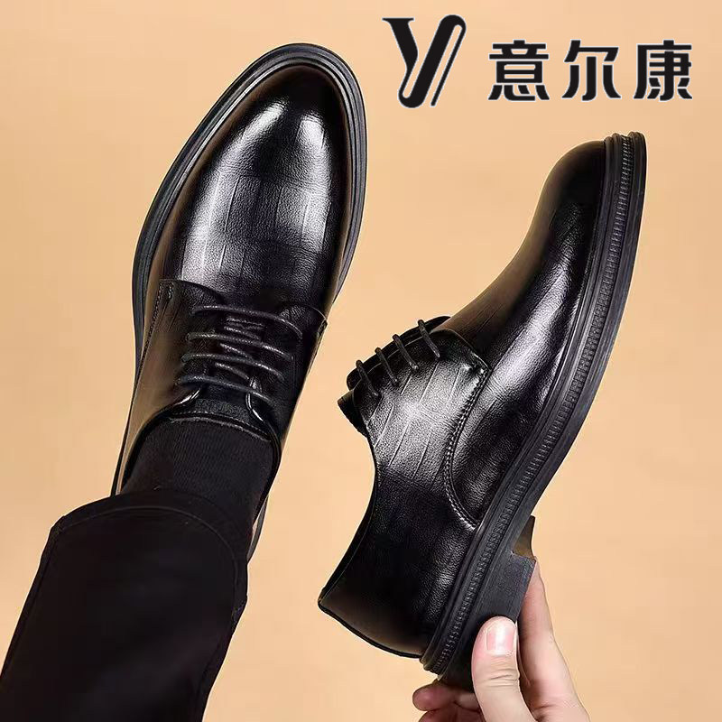 📚 意尔康男鞋秋冬新款商务正装皮鞋男加绒保暖真皮内增高厚底新郎鞋