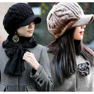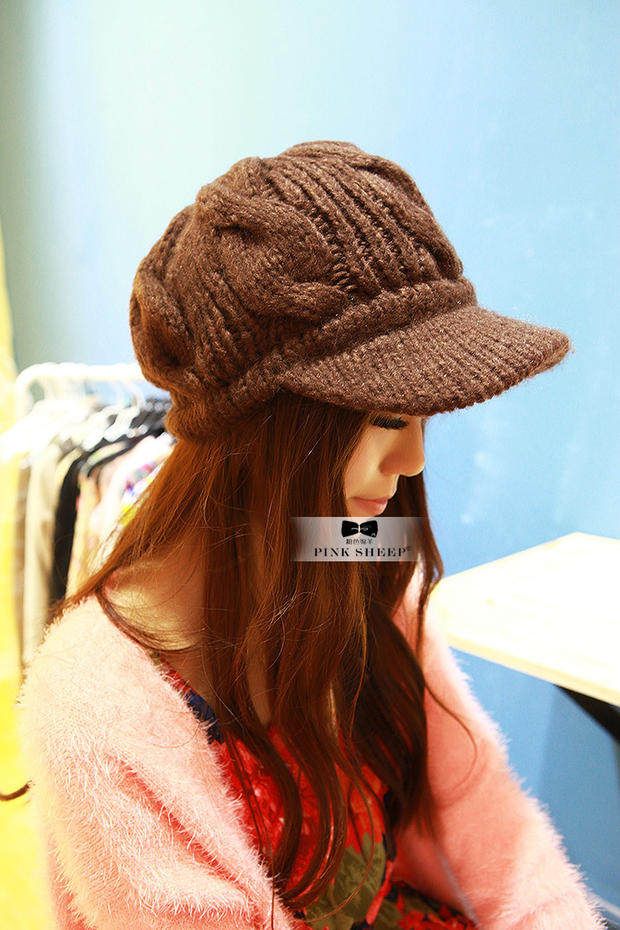 📚 韩版潮女秋冬毛线棒球帽女加厚保暖全羊毛针织帽护耳帽麻花鸭舌帽