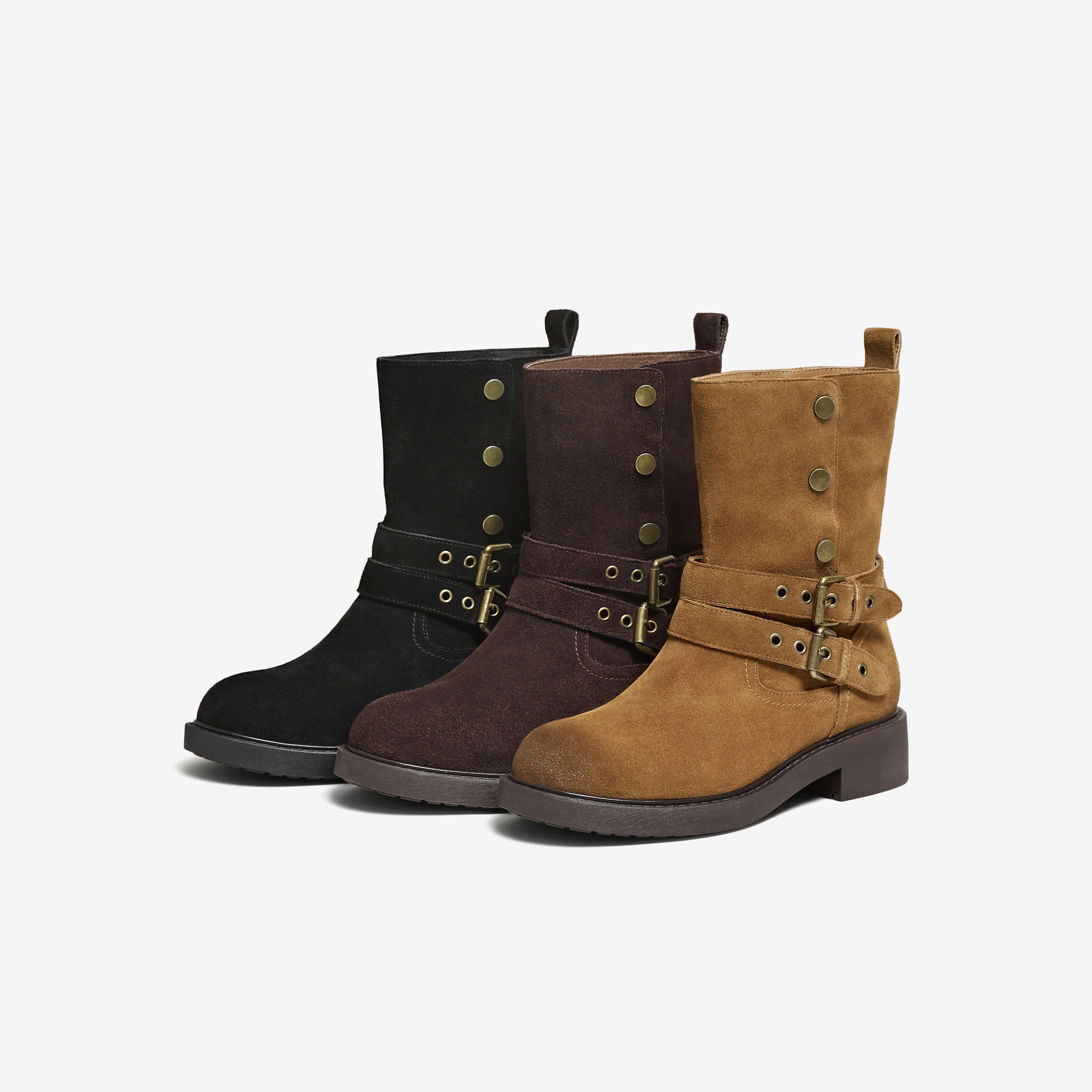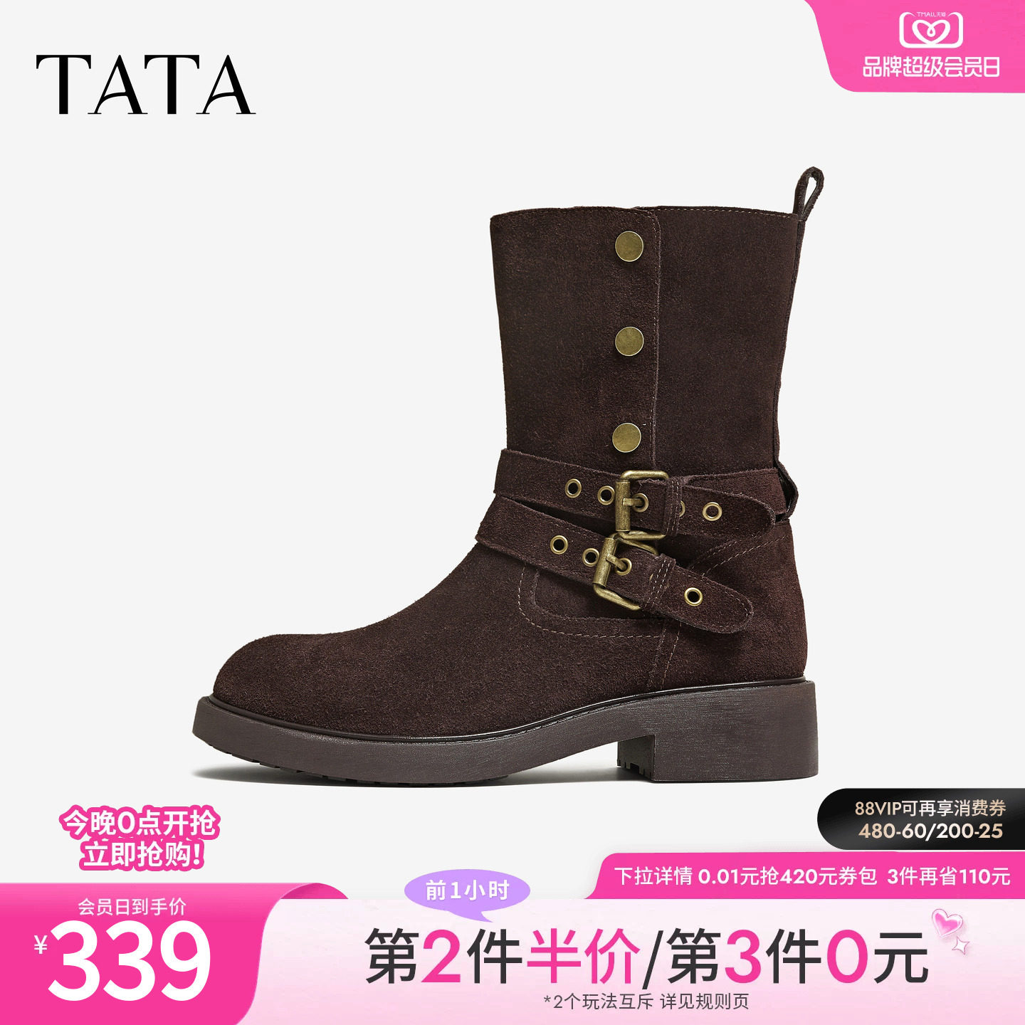 📚 TATA他她靴子2025冬季新款时装靴百搭女鞋黑色短筒休闲靴XYK01DZ5
