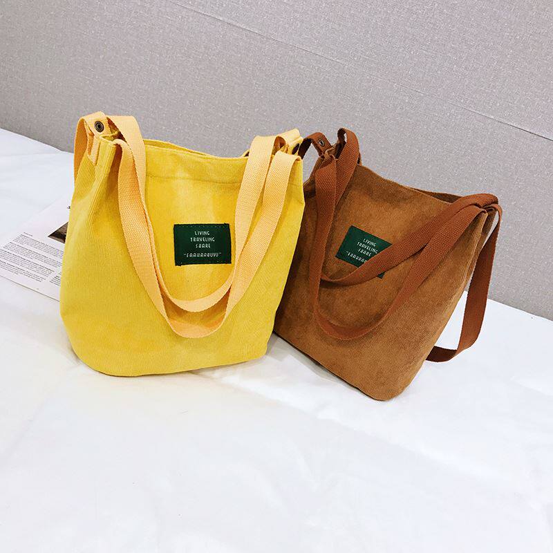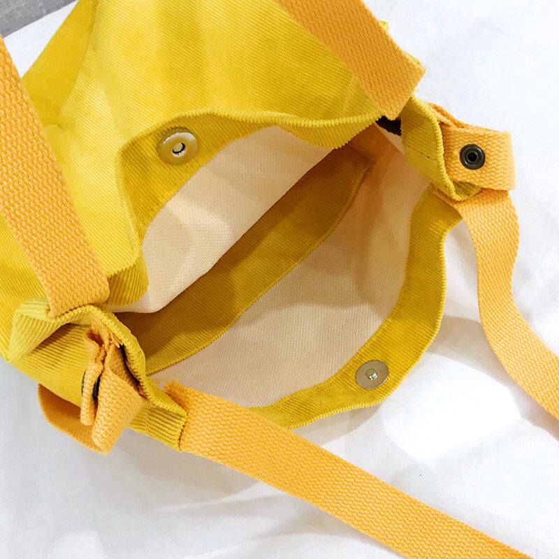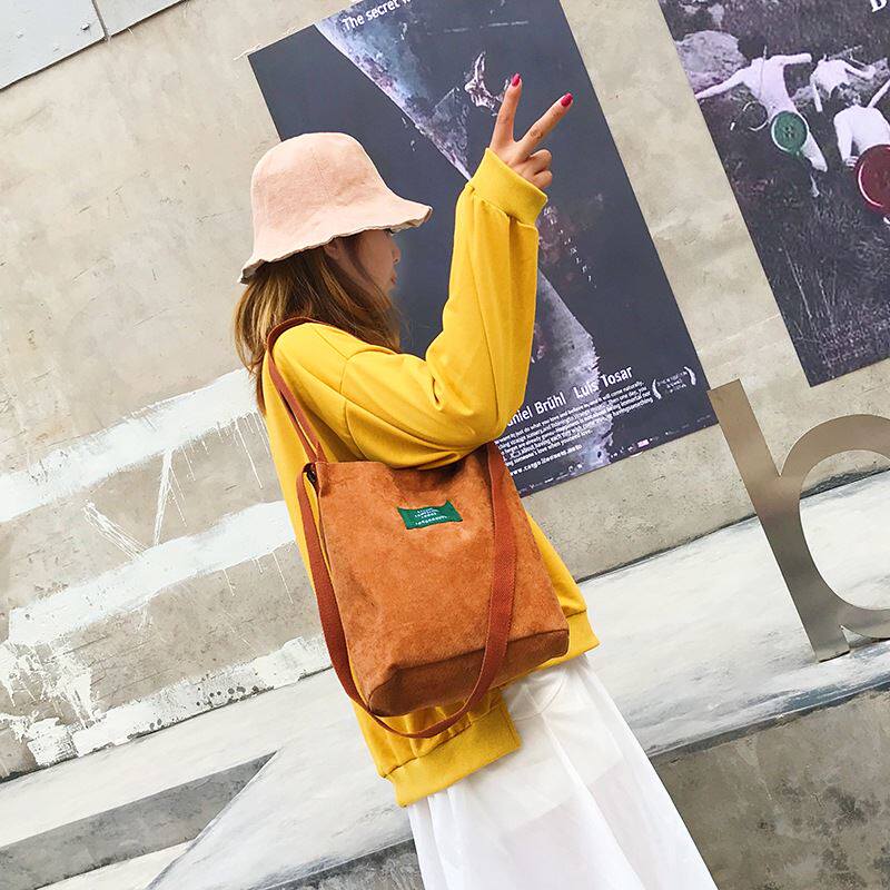📚 秋冬新款韩版帆布包女单肩斜跨简约百搭色条绒手提布包学生书包