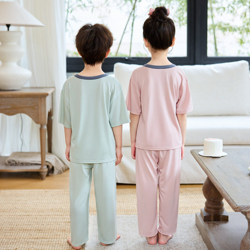 📚 2026新款夏季男童睡衣薄款女童短袖长裤儿童女孩家居服大童空调服