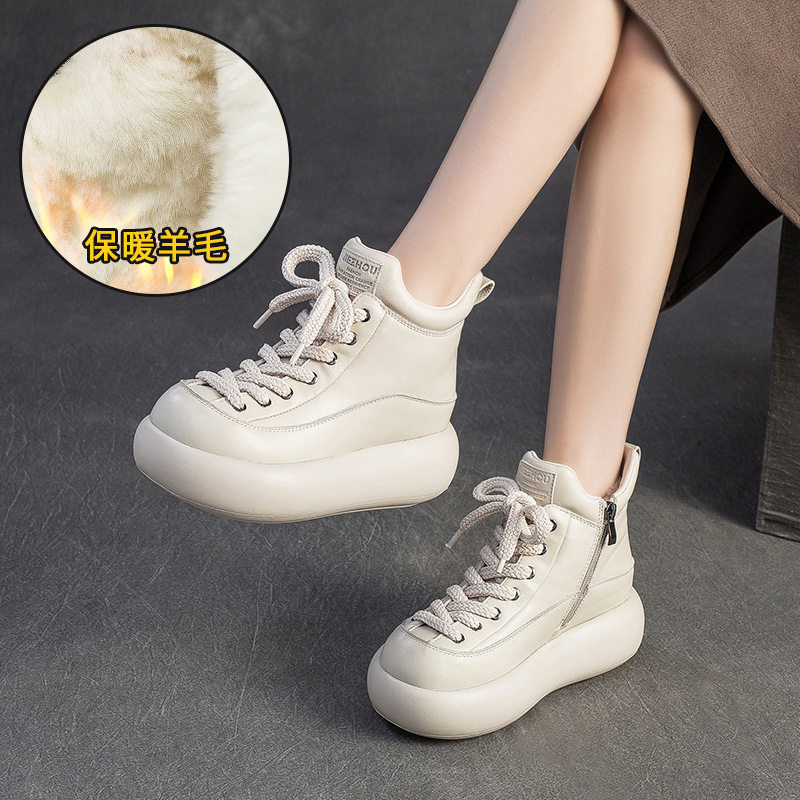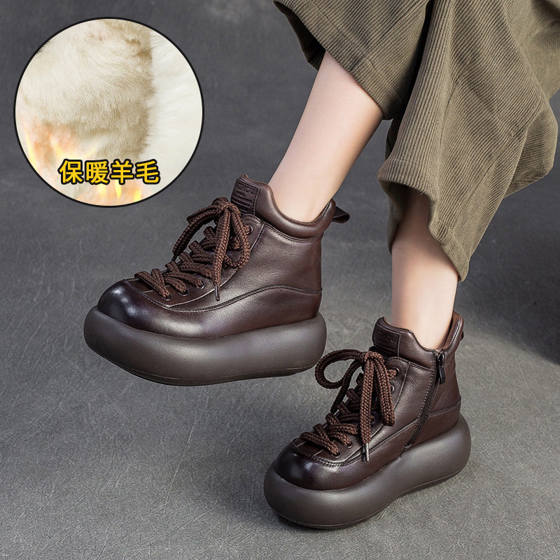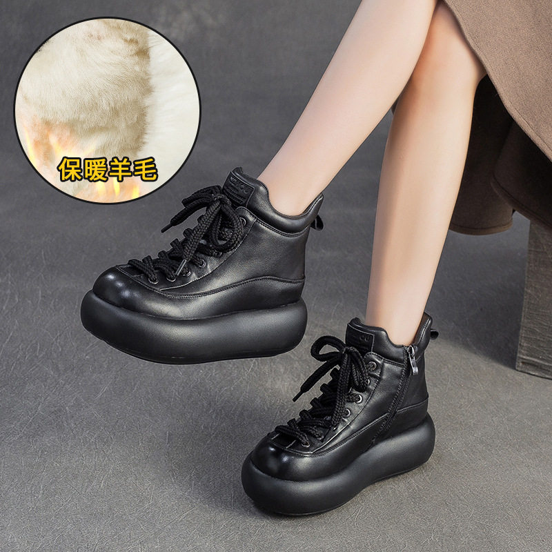📚 杰骤2025冬季新款羊毛保暖复古风雪地靴头层牛皮时尚短靴通勤女鞋