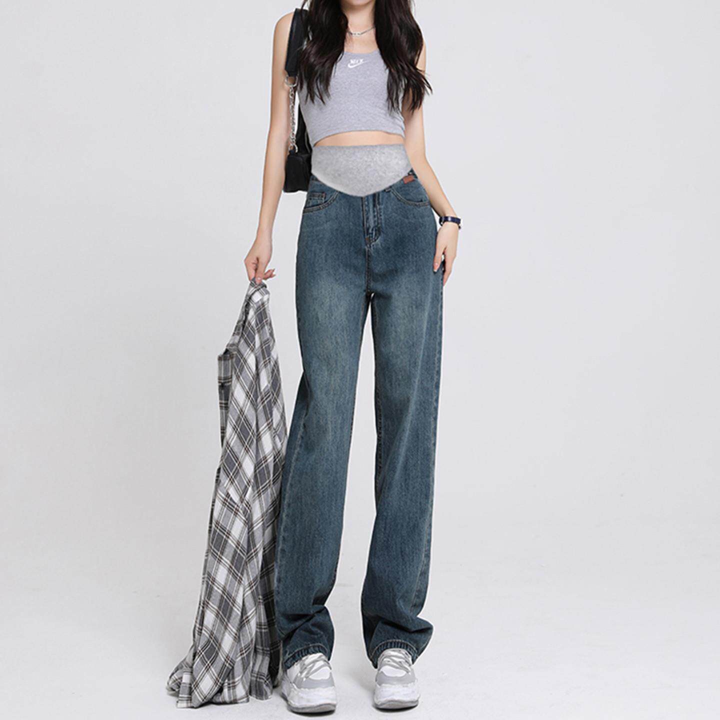 📚 孕妇裤子2025新款大尺码孕期托 托腹打底阔腿裤春秋款外穿牛仔裤
