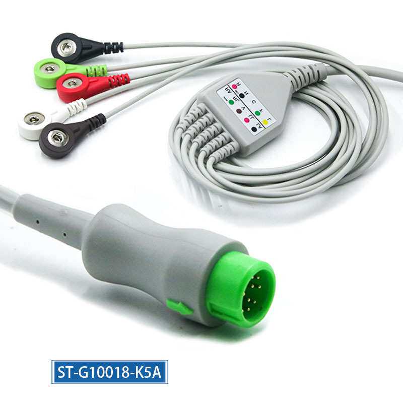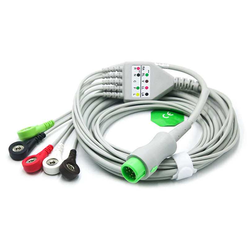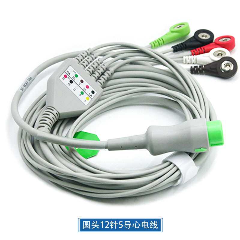📚 圆头12针5导扣式心电导联线兼容迈瑞监护仪T5 T8 iPM8 iMEC信号线