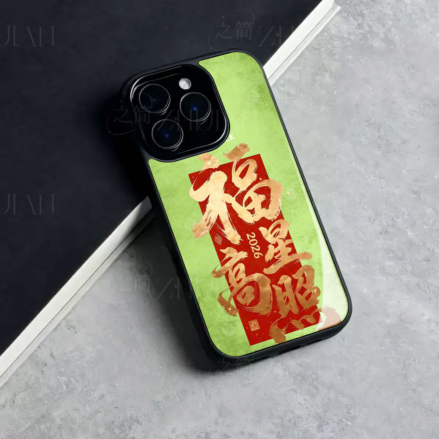 📚 苹果17promax马年福星高照玻璃手机壳马年新年祝福有钱适用苹果华为VIVOX300PROIQOONEO10PROPLUS真我GT8PROV