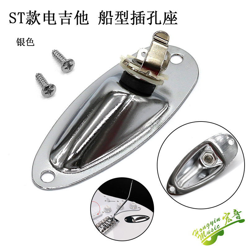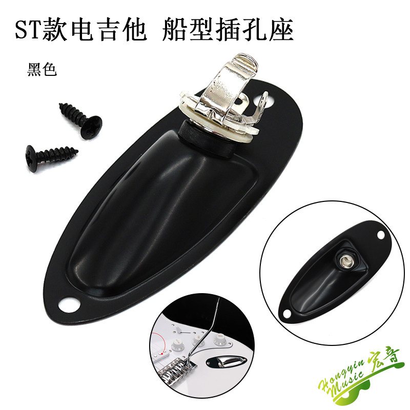 📚 速发ST款电吉他电座司金黑船形插口面板音频输出 插孔 插贝属金铬