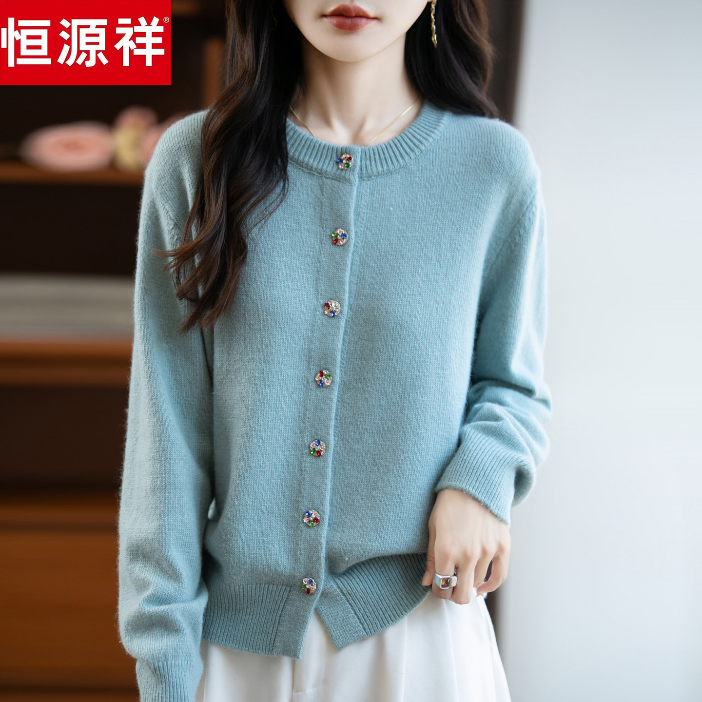 📚 恒源祥圆领羊毛衫女秋冬宽松显瘦针织开衫毛衣外搭百搭上衣妈妈装