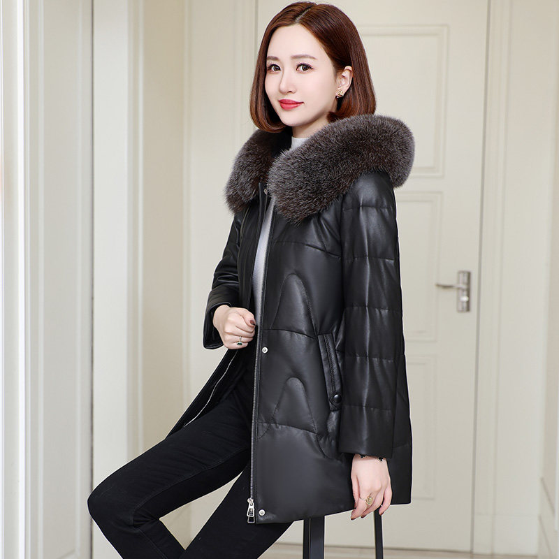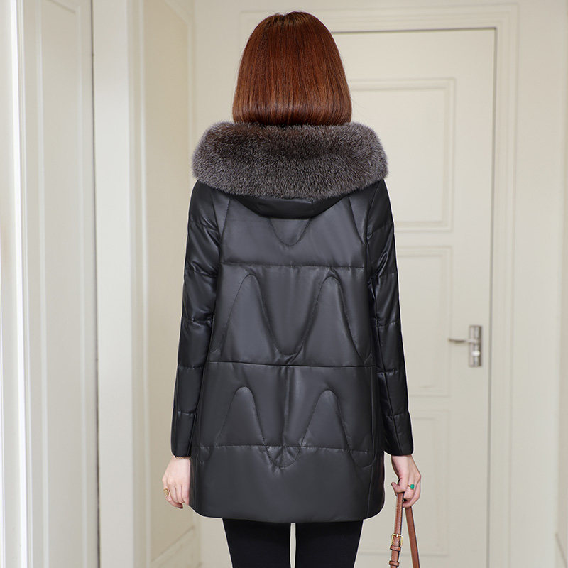 📚 真皮羽绒服女连帽2025冬季新款狐狸毛领海宁绵羊皮皮衣外套中长款
