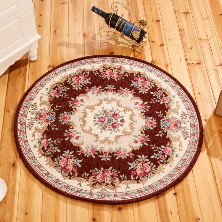 📚 地毯欧式田园风格客厅玄关地垫圆形电脑椅垫卧室床边毯书房电脑椅