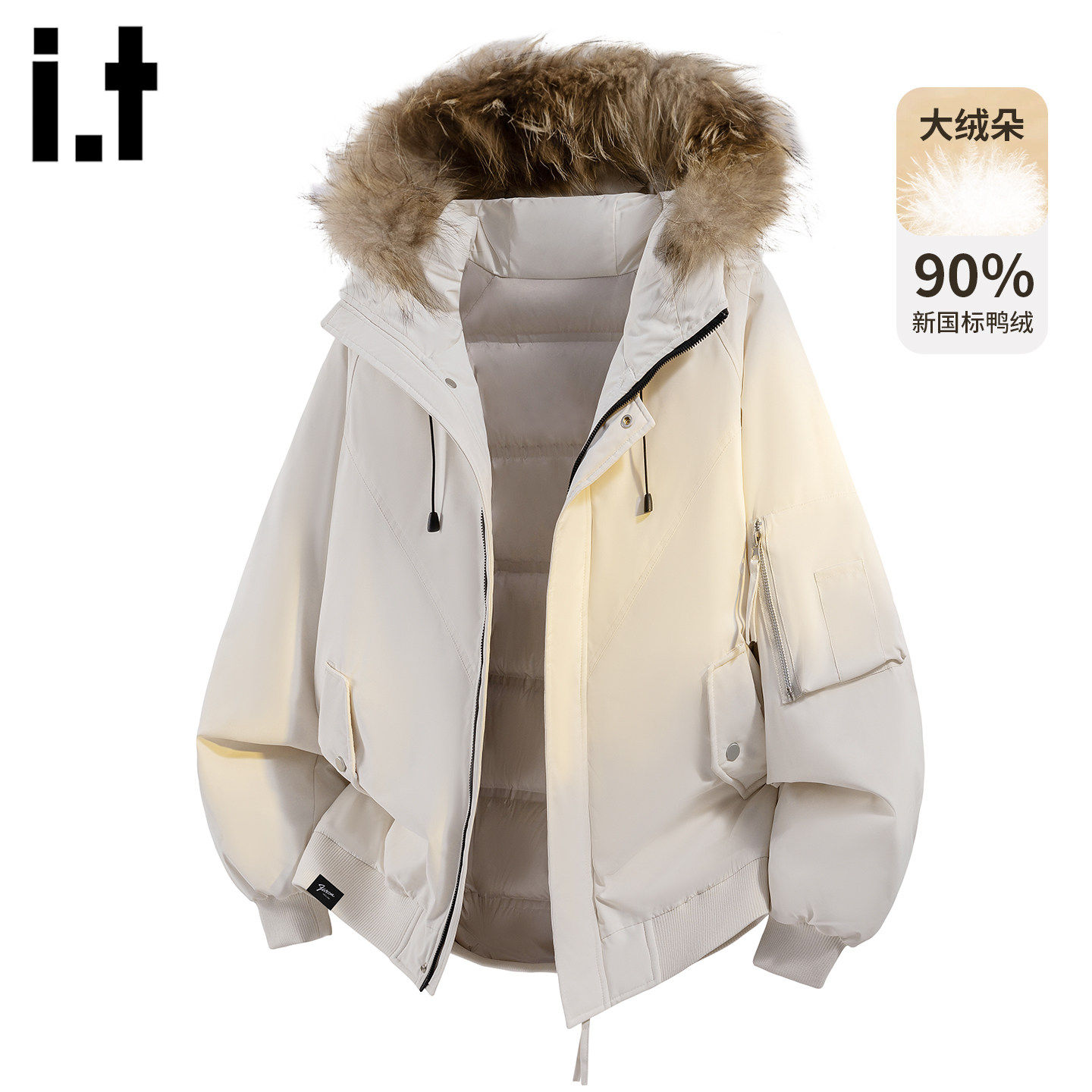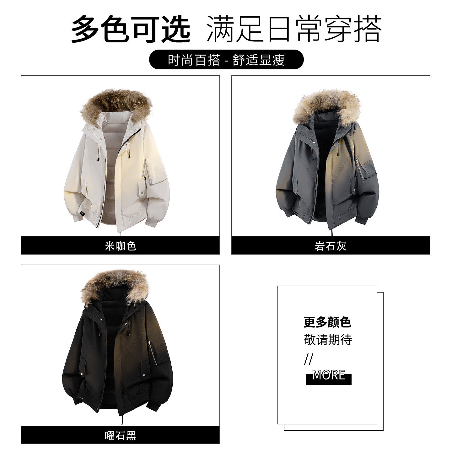 📚 New Bcfauae NB黑色大毛领连帽羽绒服男女冬季加厚白鸭绒外套