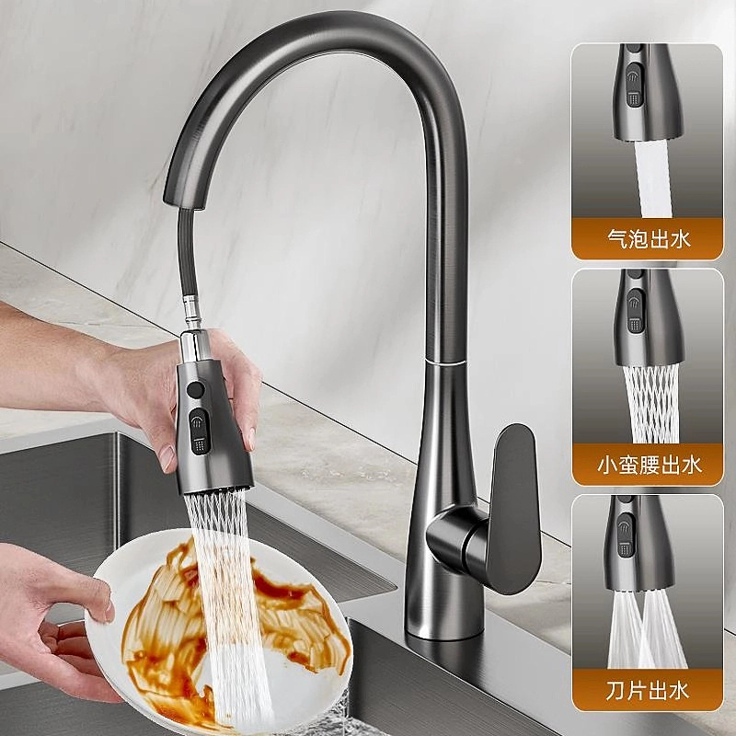 📚 包安装全铜厨房抽拉式水龙头伸缩洗菜盆专用水槽冷热两用增压防溅