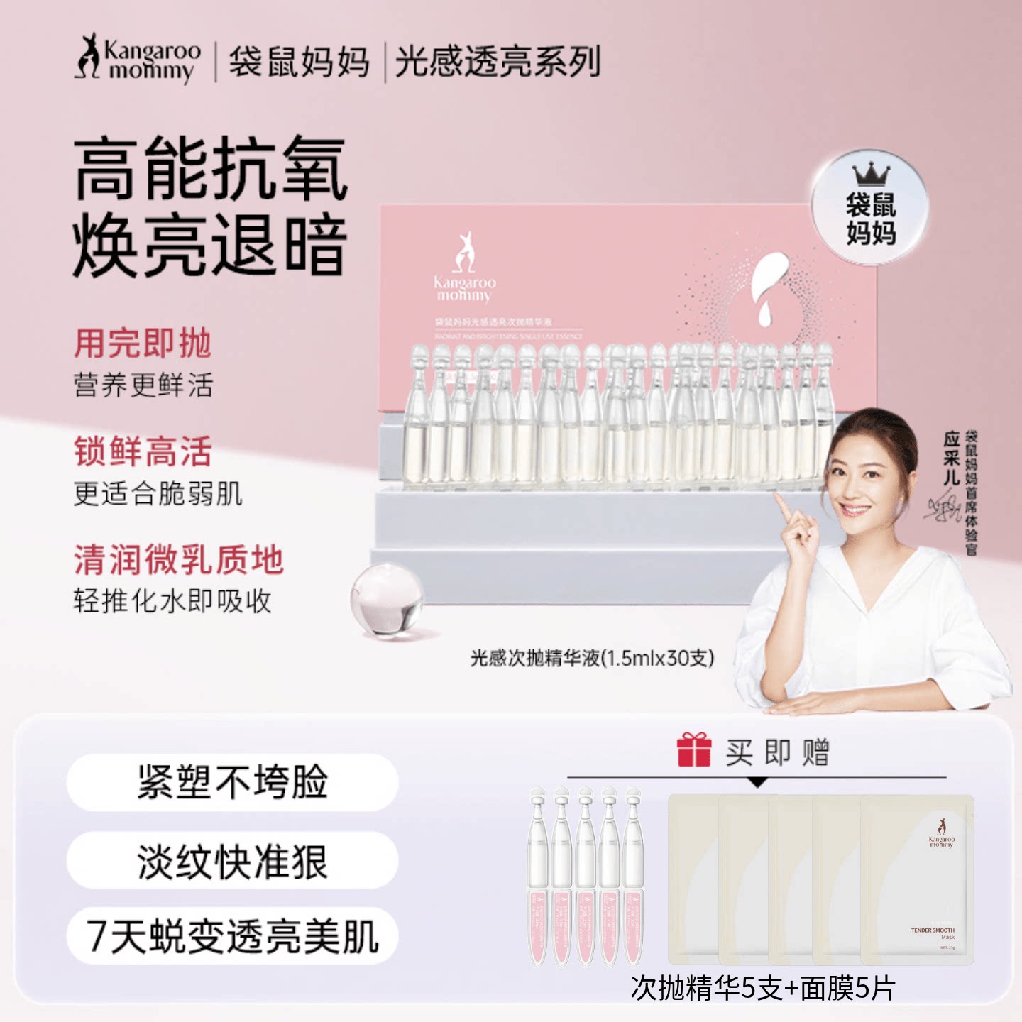 📚 袋鼠妈妈光感透亮次抛精华液30支补水提亮肤色改善暗沉护肤品正品