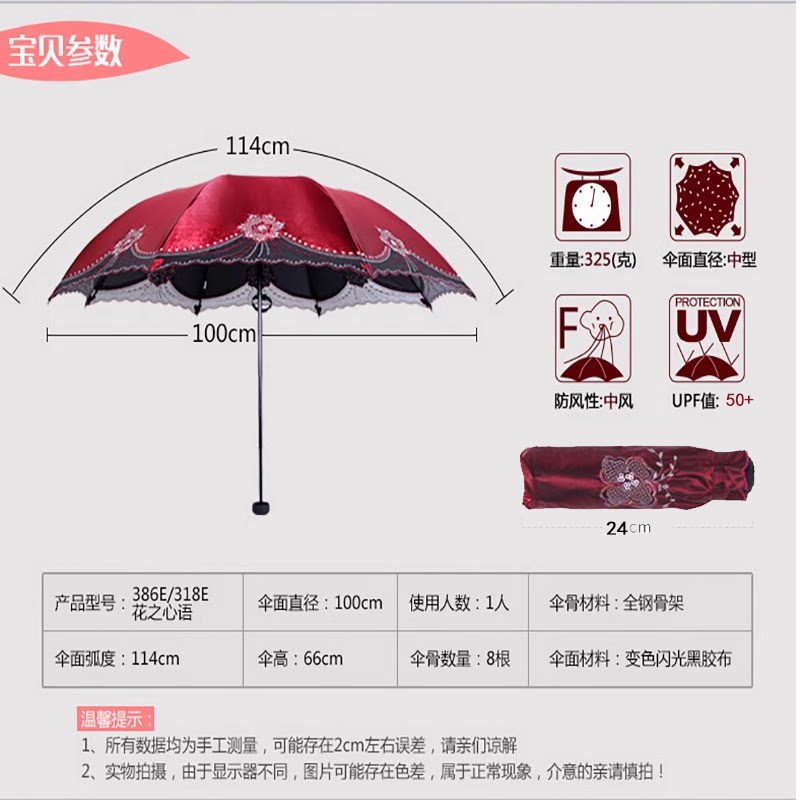 📚 天堂伞晴雨伞雨伞防晒防紫外线遮阳伞女两用太阳伞黑胶蕾丝防晒伞