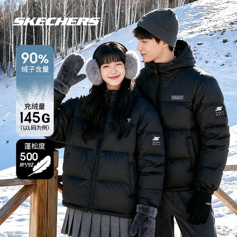 📚 斯凯奇轻薄羽绒服春季新款男装女装黑色夹克保暖棉服短款羽绒外套