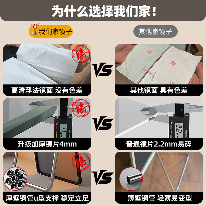 📚 【真防爆】ins风全身镜落地镜子家用壁挂穿衣镜女卧室简约试衣镜