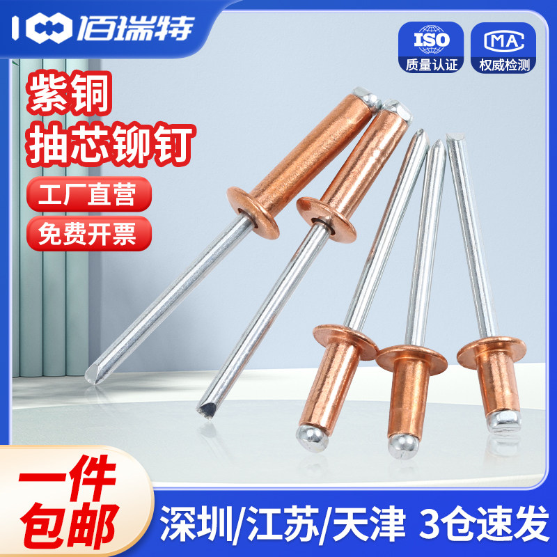 📚 紫铜抽芯铆钉M2.4M3.2M4M4.8开口型圆头铜拉钉半圆头铜拉帽钉铆钉