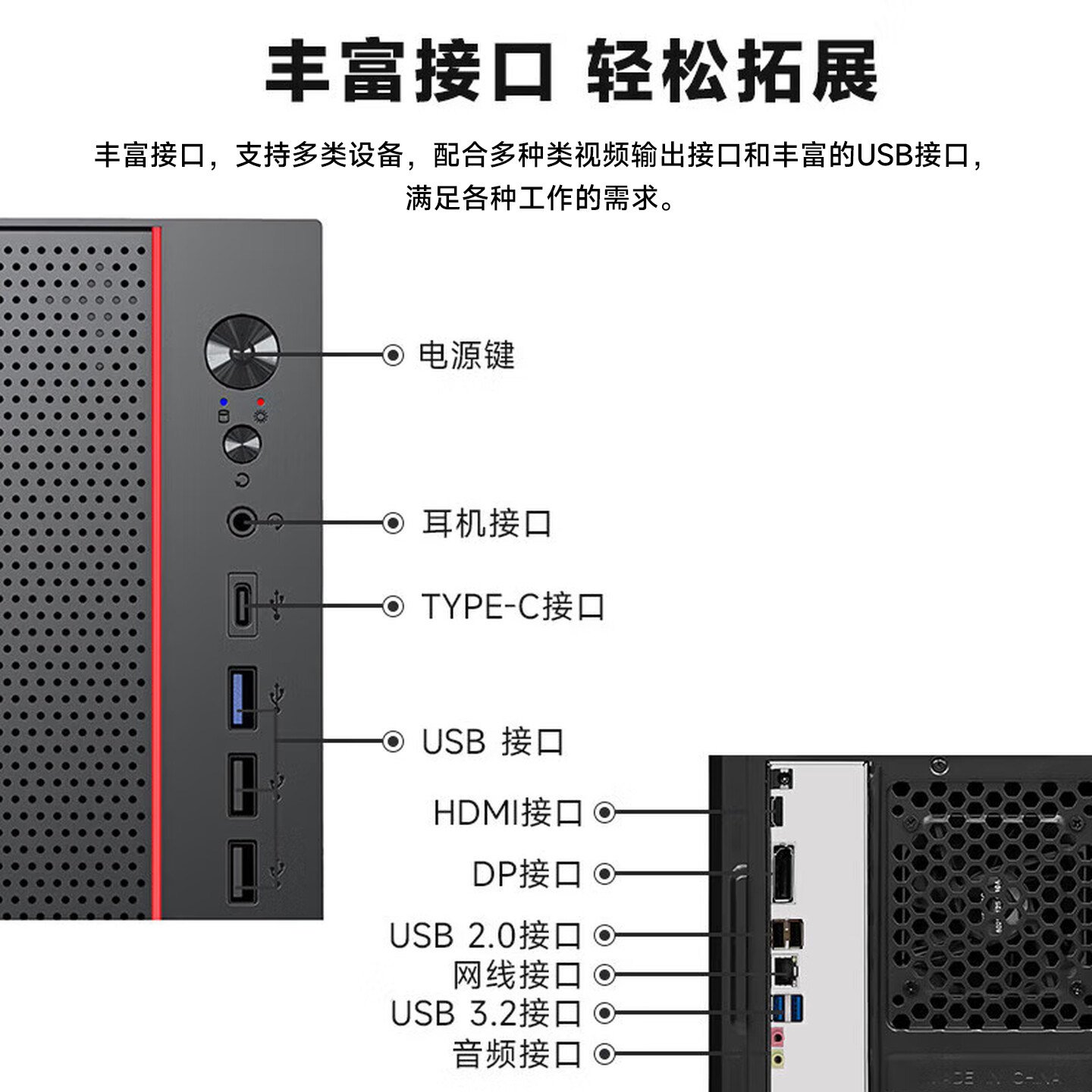 📚 联想Lenovo台式机电脑带Wi-Fi全套高性能主机锐龙5八线程性能主机