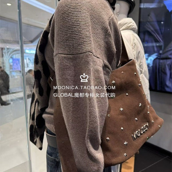 📚 MOUSSY国内代购 25冬 鹿皮铆钉字母单肩包包女028IAA56-1015/1031