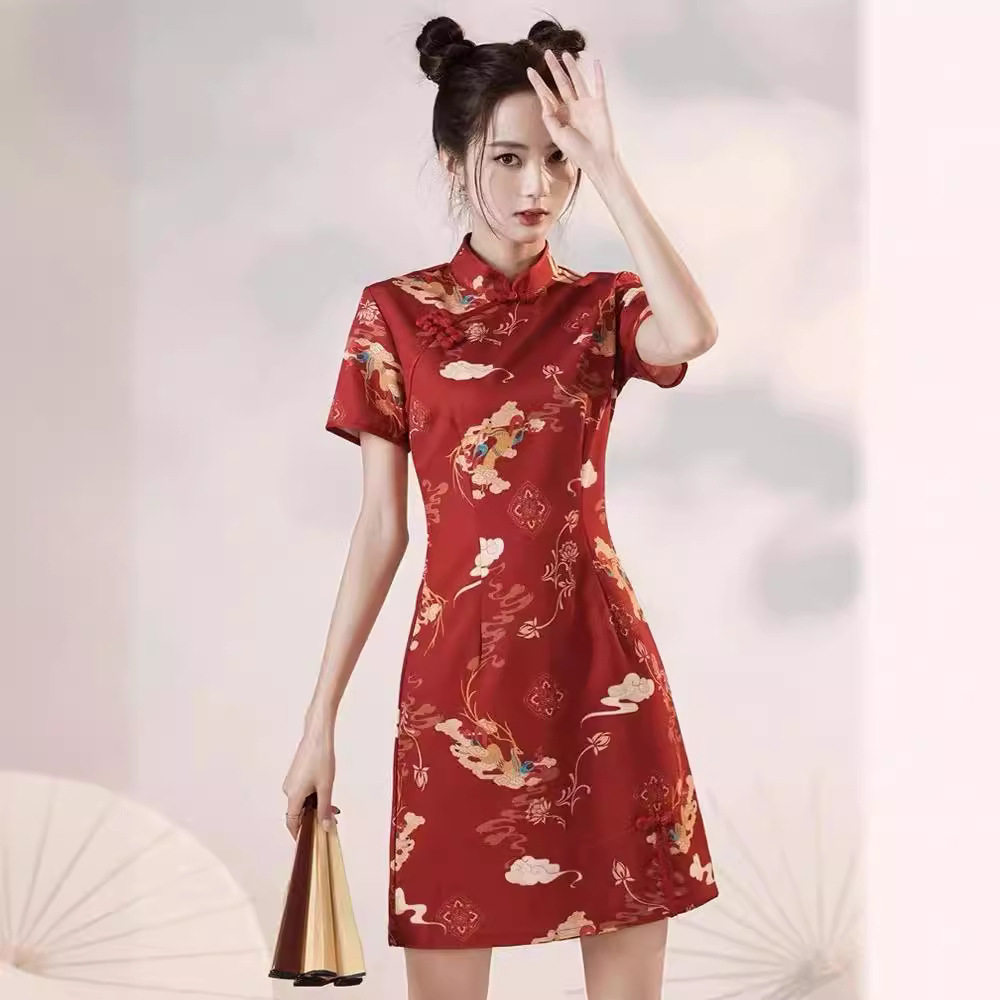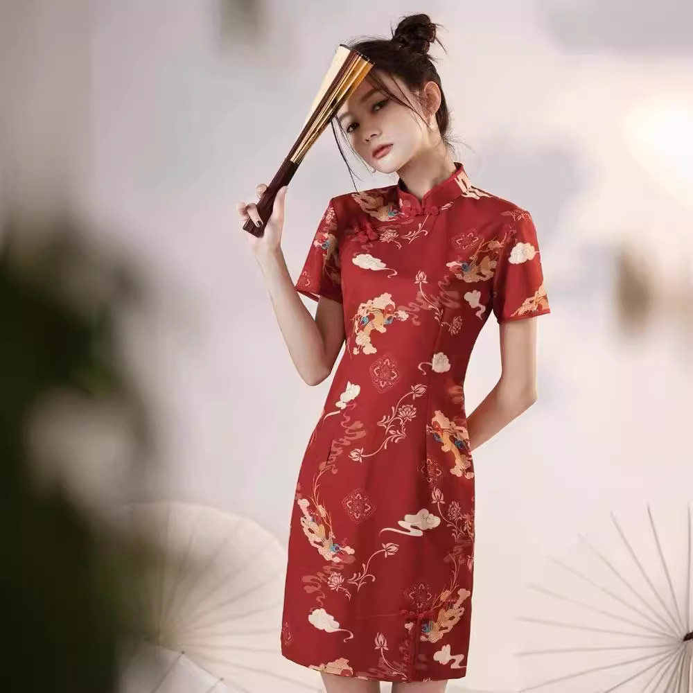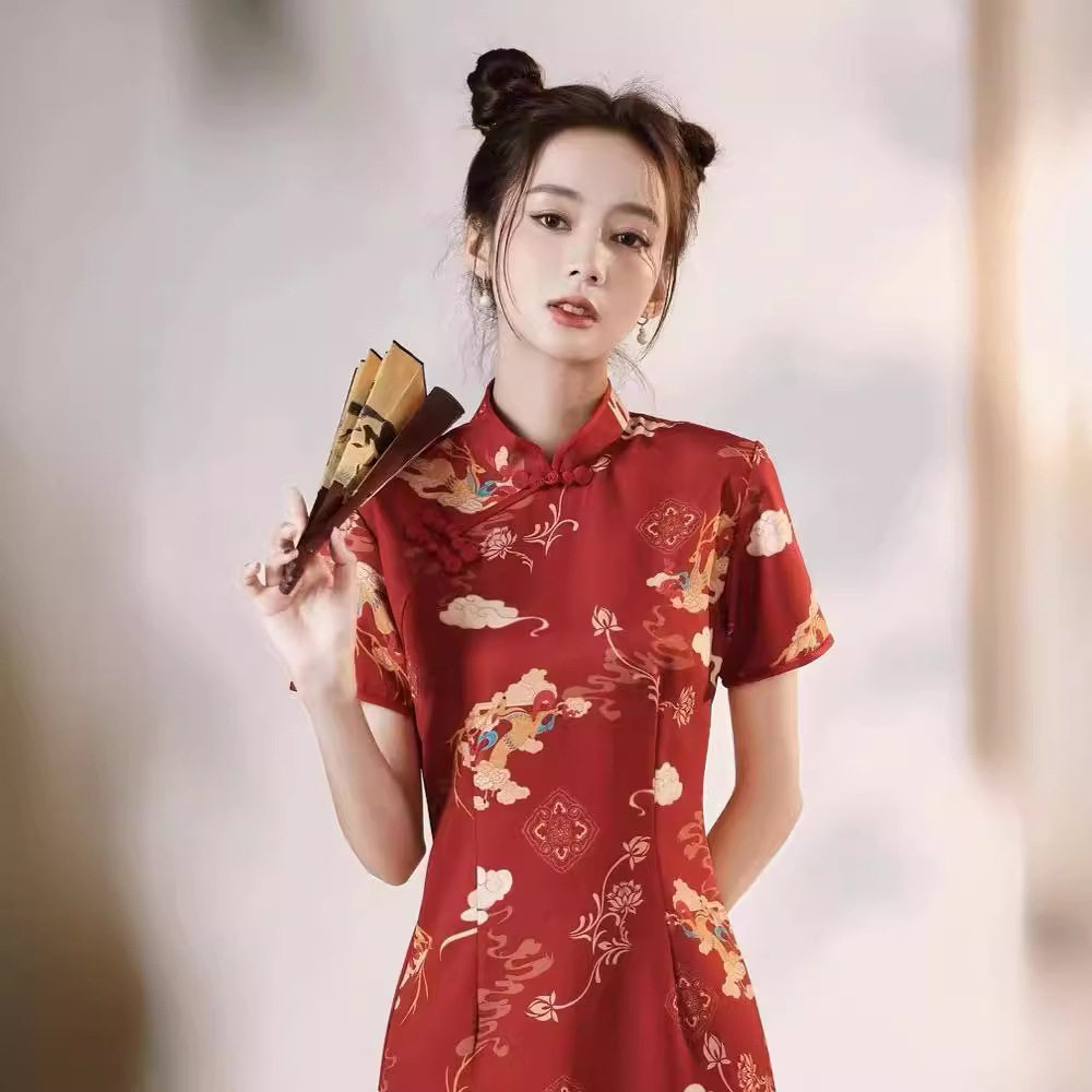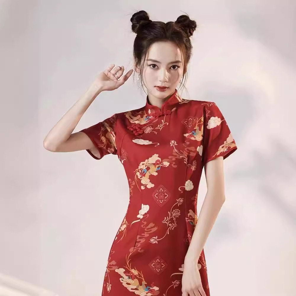 📚 红色改良国朝炸街旗袍晨袍2026年新款小个子新中式订婚敬酒服女夏
