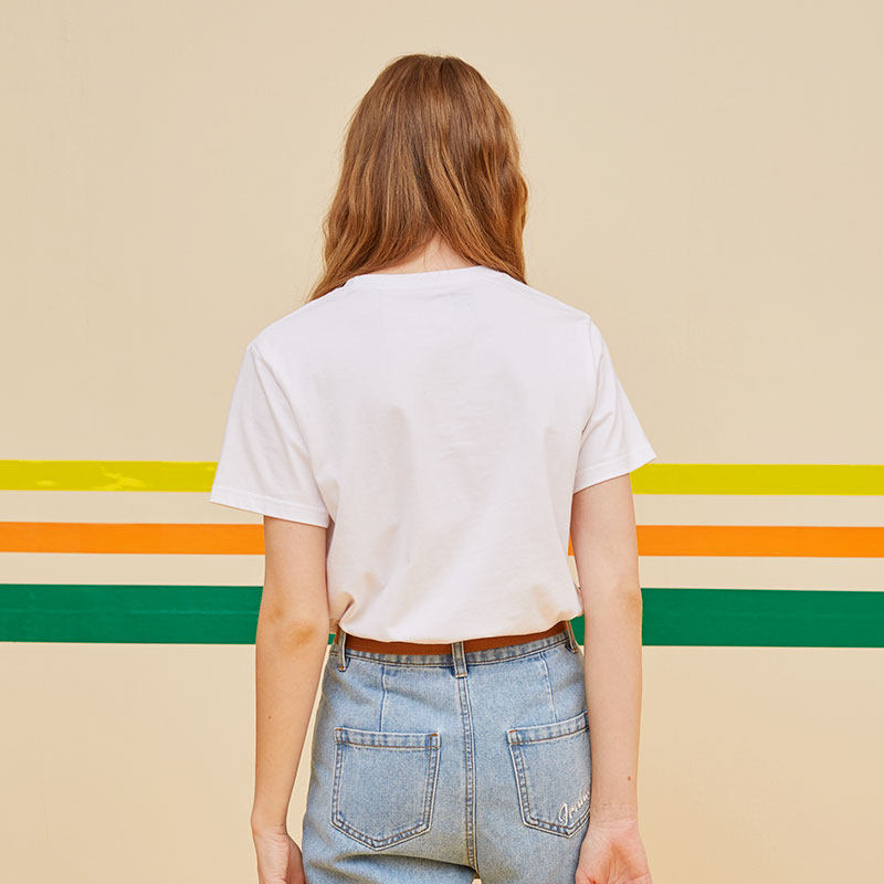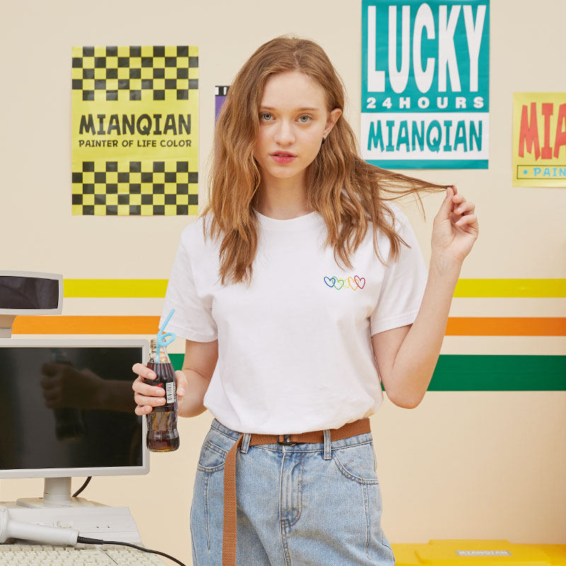 📚 简约爱心纯白色正肩短袖t恤女减龄显瘦上衣夏季百搭纯棉半袖ins潮