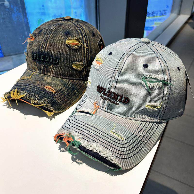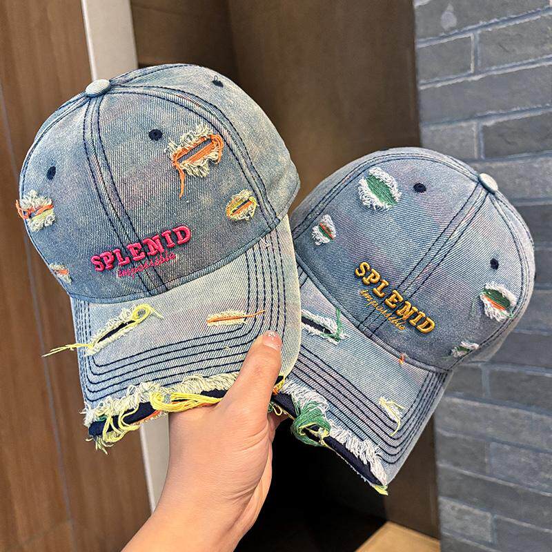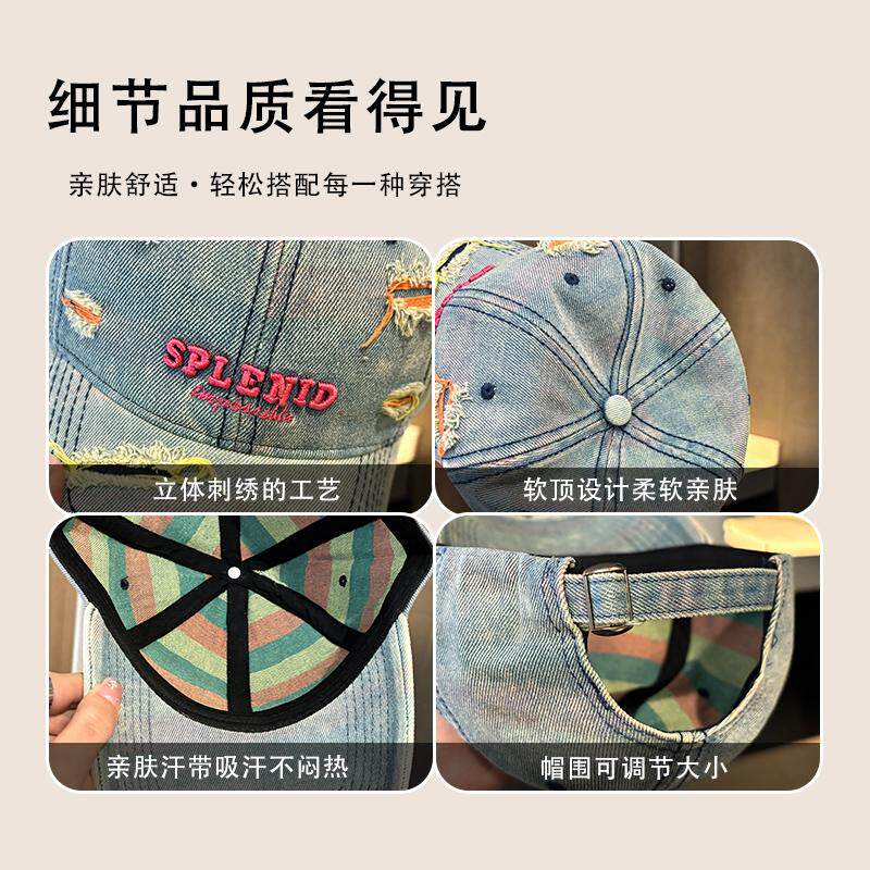 📚 水洗牛仔棒球帽子女刺绣字母破洞鸭舌帽春夏季情侣休闲遮阳帽子男