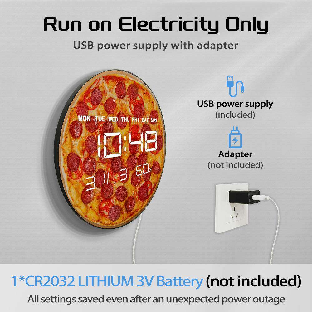 📚 披萨快餐图静案简客厅挂钟度电子多功能家约用时DZA-0036钟带温湿