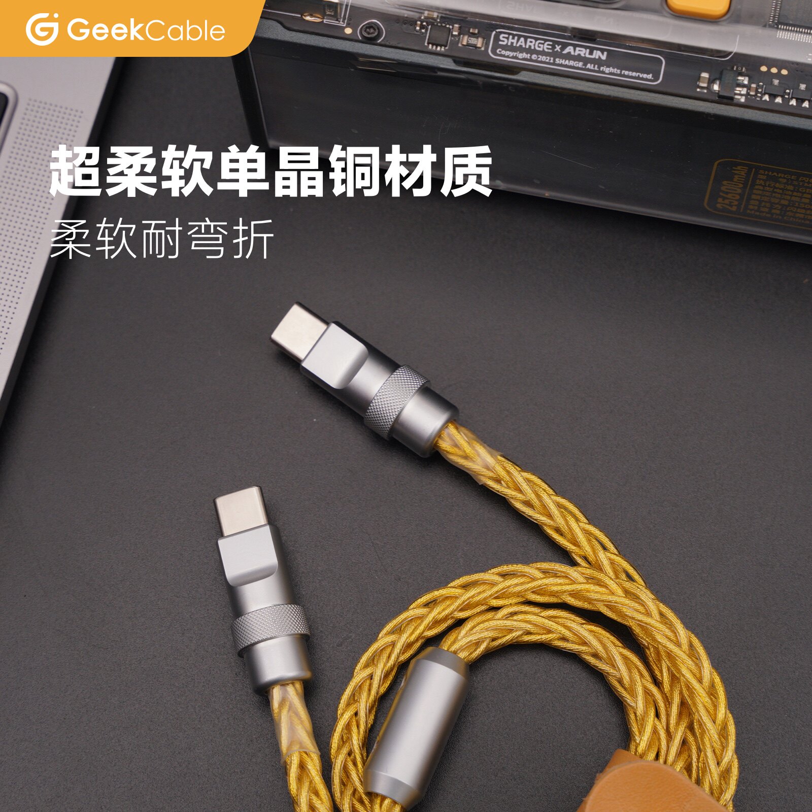 📚 GeekCable极鲨手工适用于苹果三星手机笔记本电脑PD3.1充电240W数据线iPad单晶铜