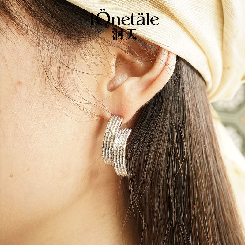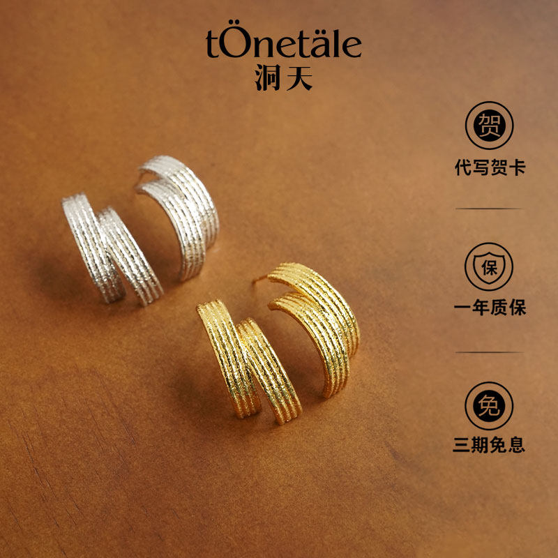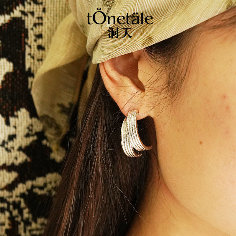 📚 洞天TONE&TALE时轮耳钉简约独特手工感细闪金属纹理日常百搭女