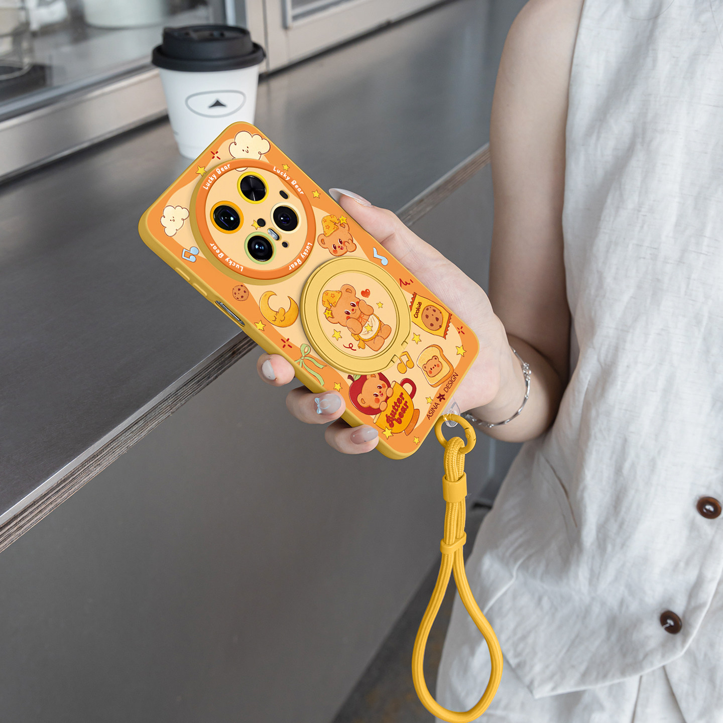 📚 黄色熊仔适用华为Mate80Promax手机壳磁吸带支架Pura80pro新款mt60por+支点保护套p70液态硅胶Bo5高级mt70