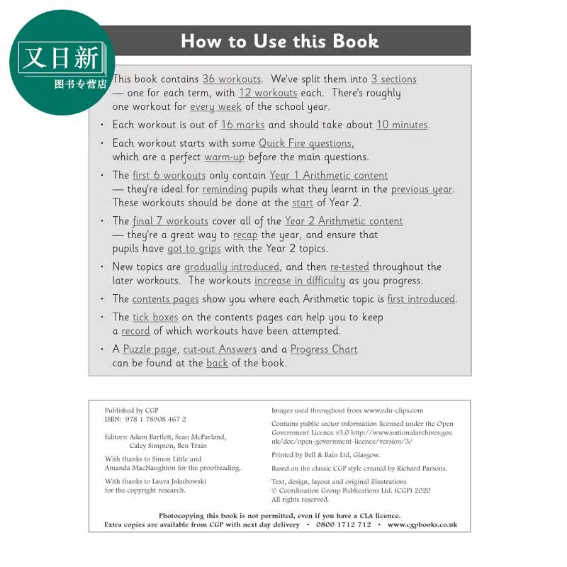 📚 英国原版CGP教辅 新KS1数学10分钟每周锻炼算术第2年 New KS1 Maths 10-Minute Weekly Workouts Arithmetic Year 2 又日新
