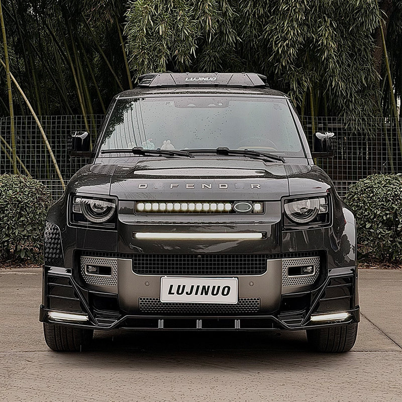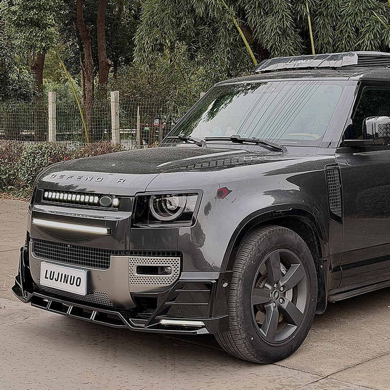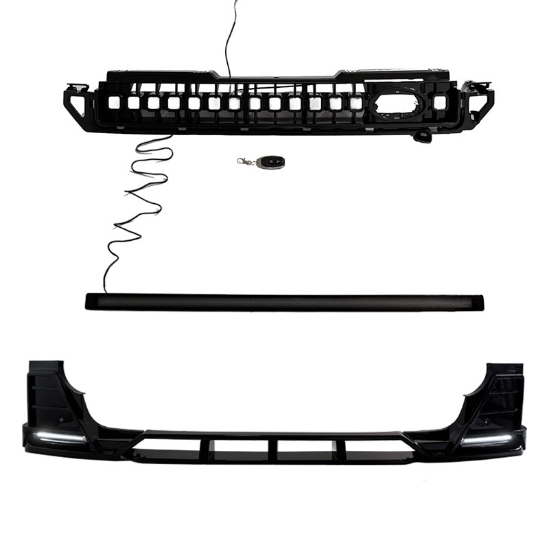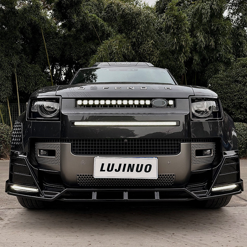 📚 适用于路虎卫士90/110带灯前铲OCTA中网贯穿流光灯前唇包围改装件