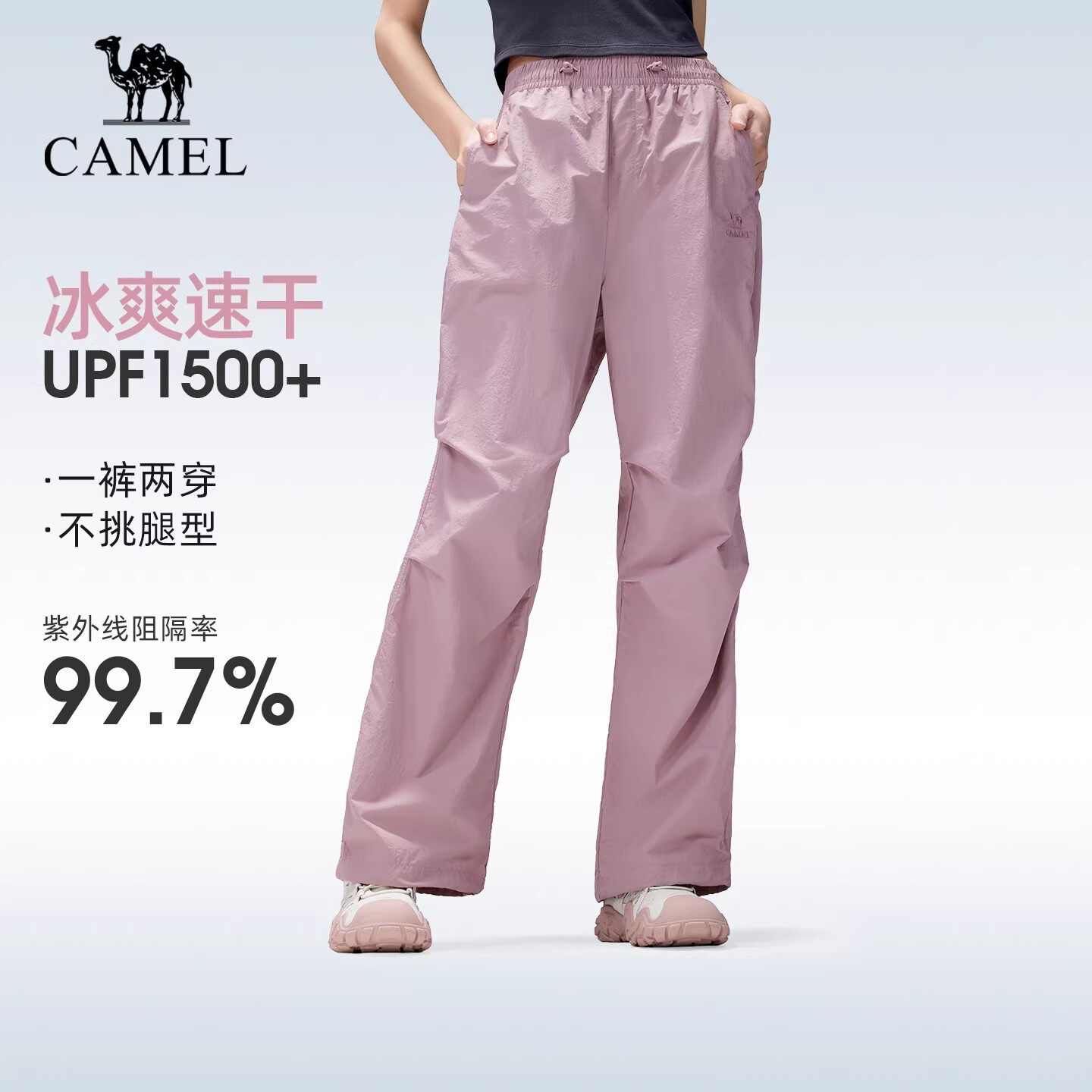 📚 骆驼户外速干伞兵裤女2026春夏新款凉感防晒阔腿裤徒步登山休闲裤