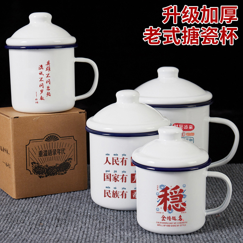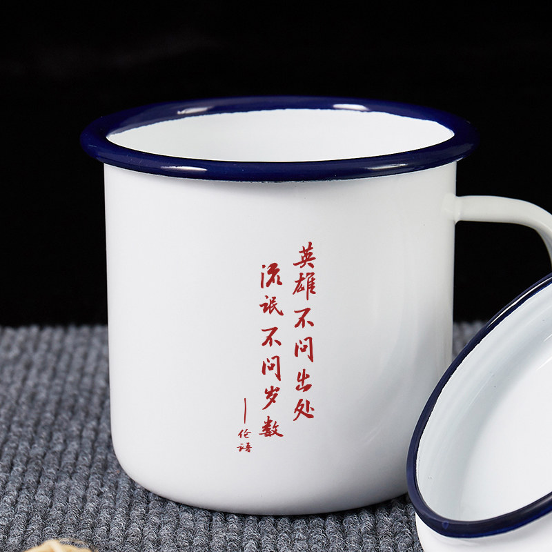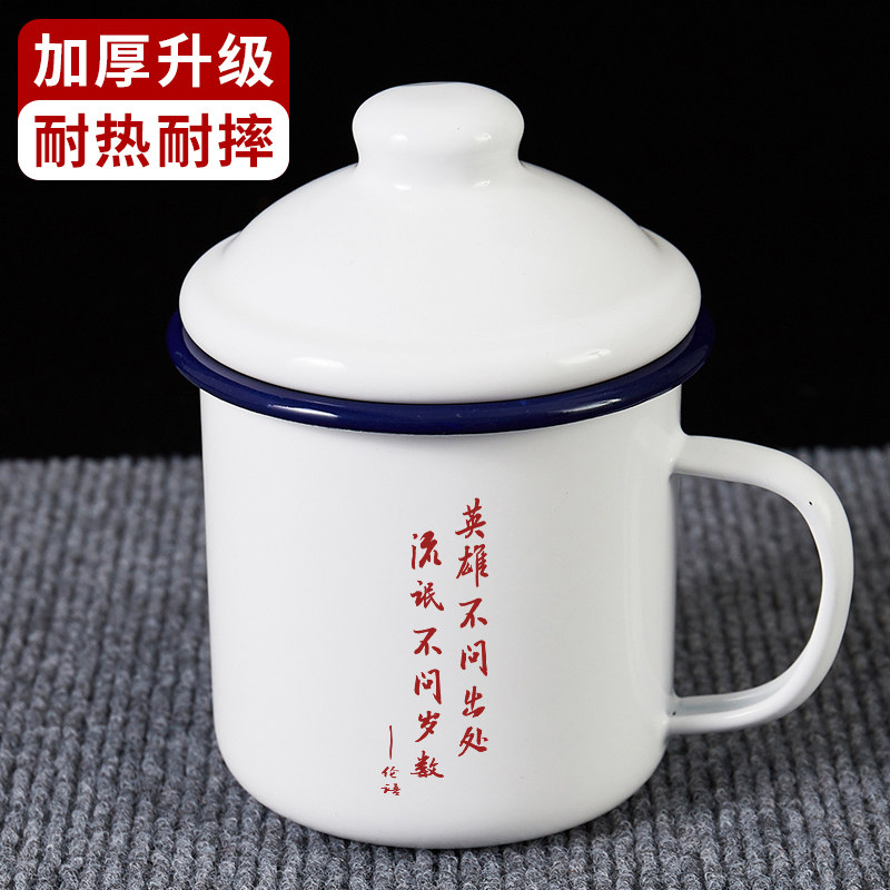 📚 英雄不问出处搪瓷杯加厚大容量带盖怀旧马克杯子老式茶缸水杯定制